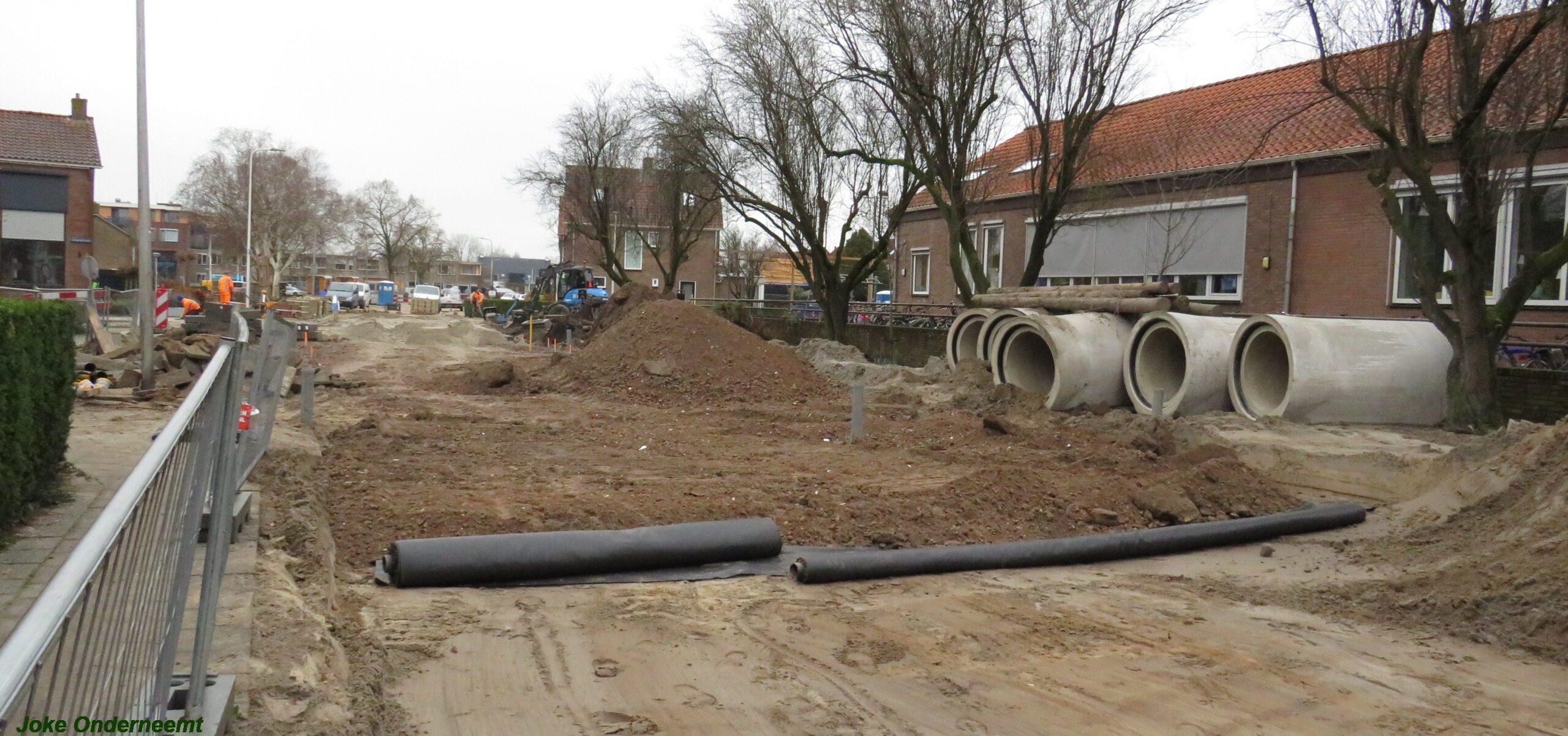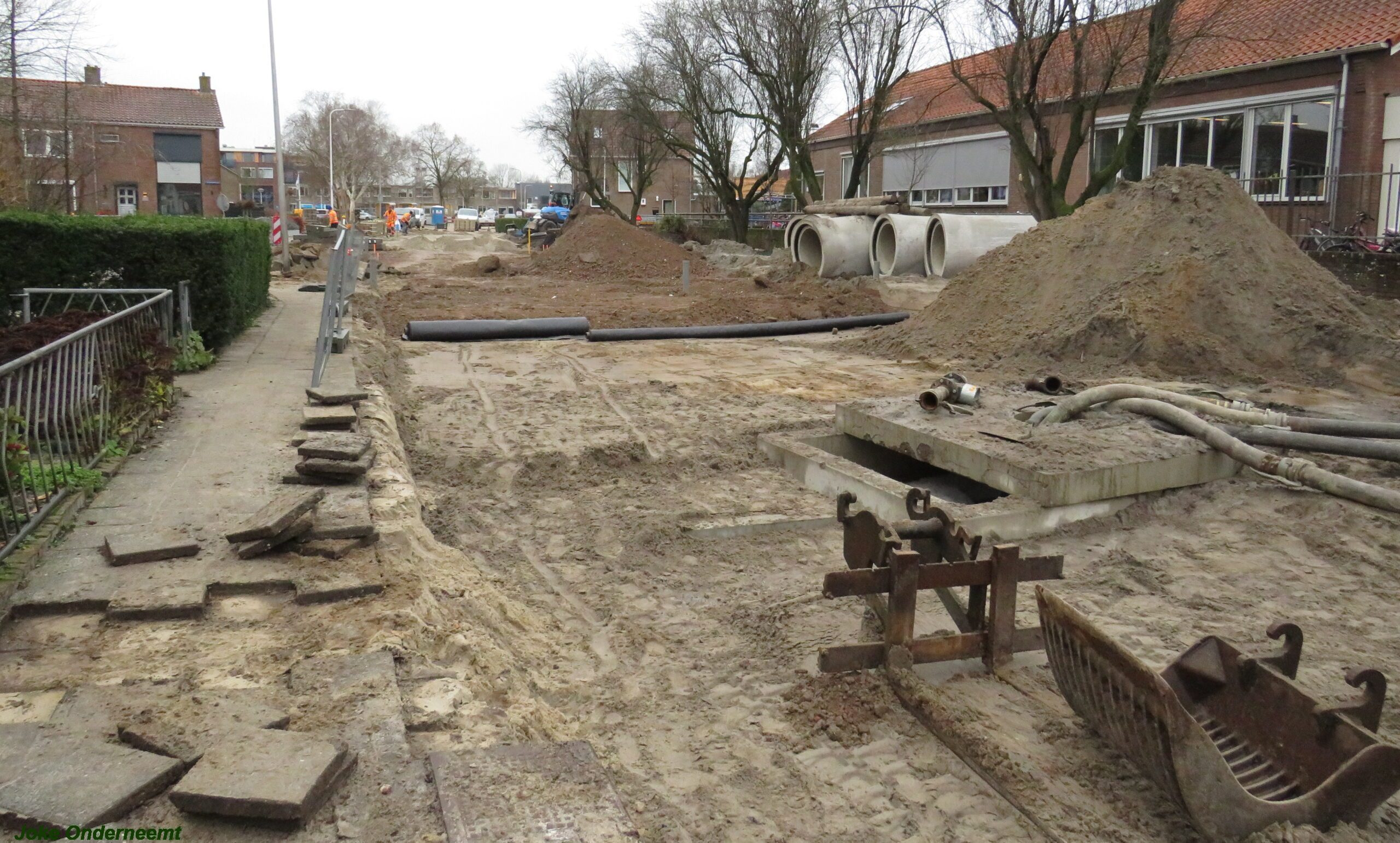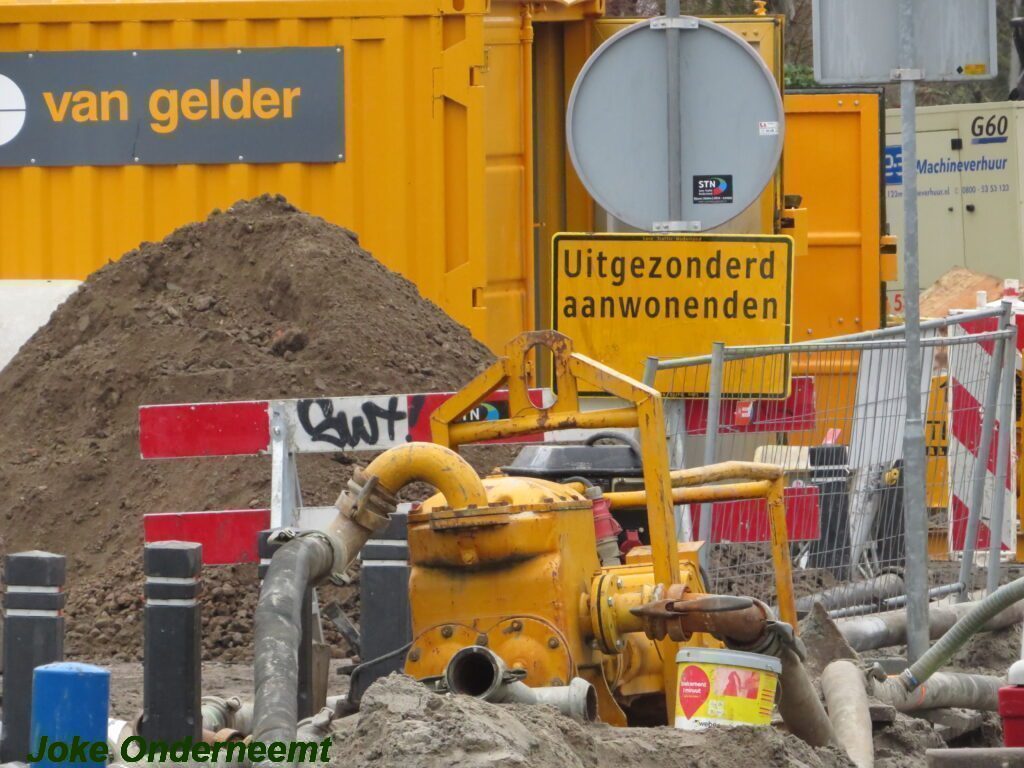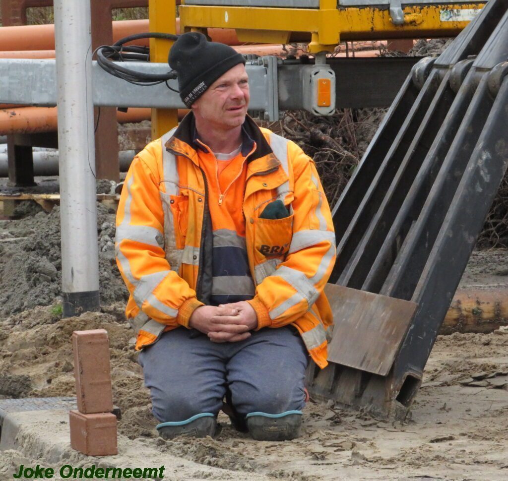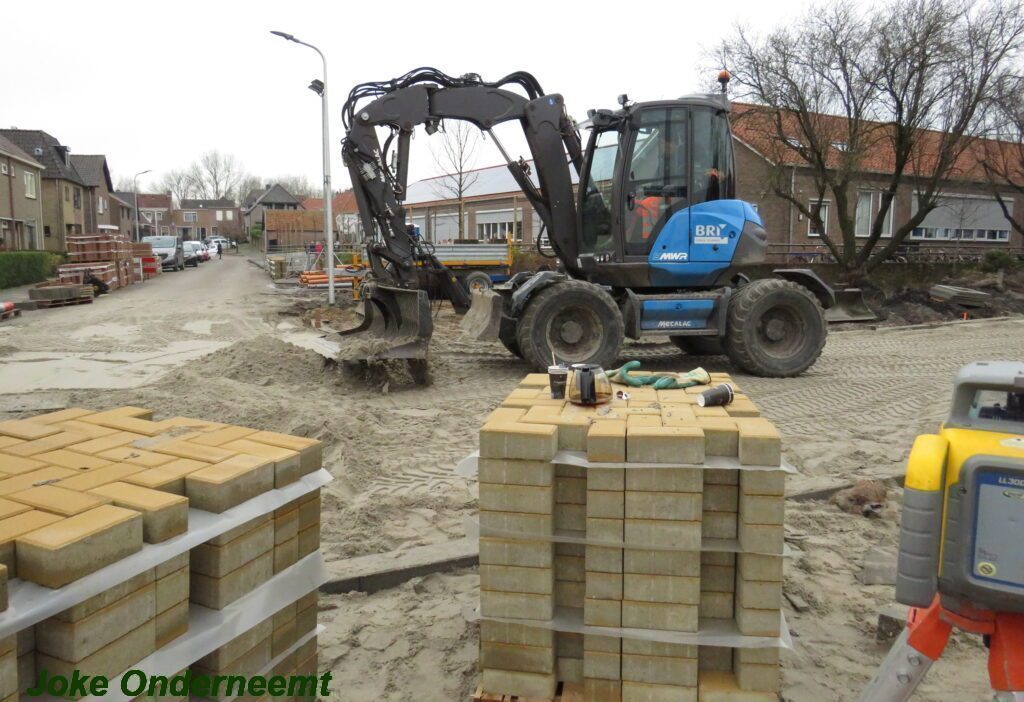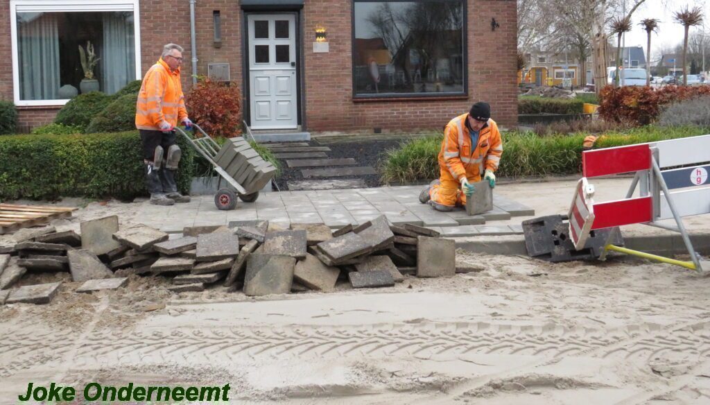 Ik mocht even in de schaftkeet een foto maken van de tekening, die daar aan de muur hing en met een beetje inzomen kun je het mooi zien wat het gaat worden. Maar voorlopig is het nog even een weekje of twee stevig bikkelen voordat de straat weer even toegangkelijk is voor het verkeer .