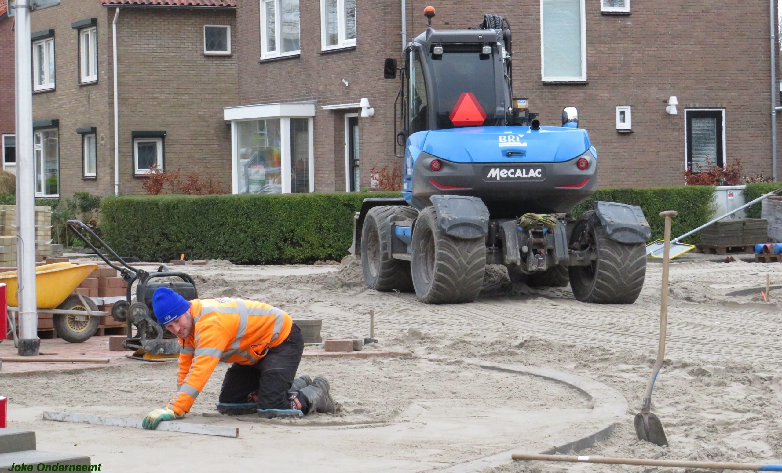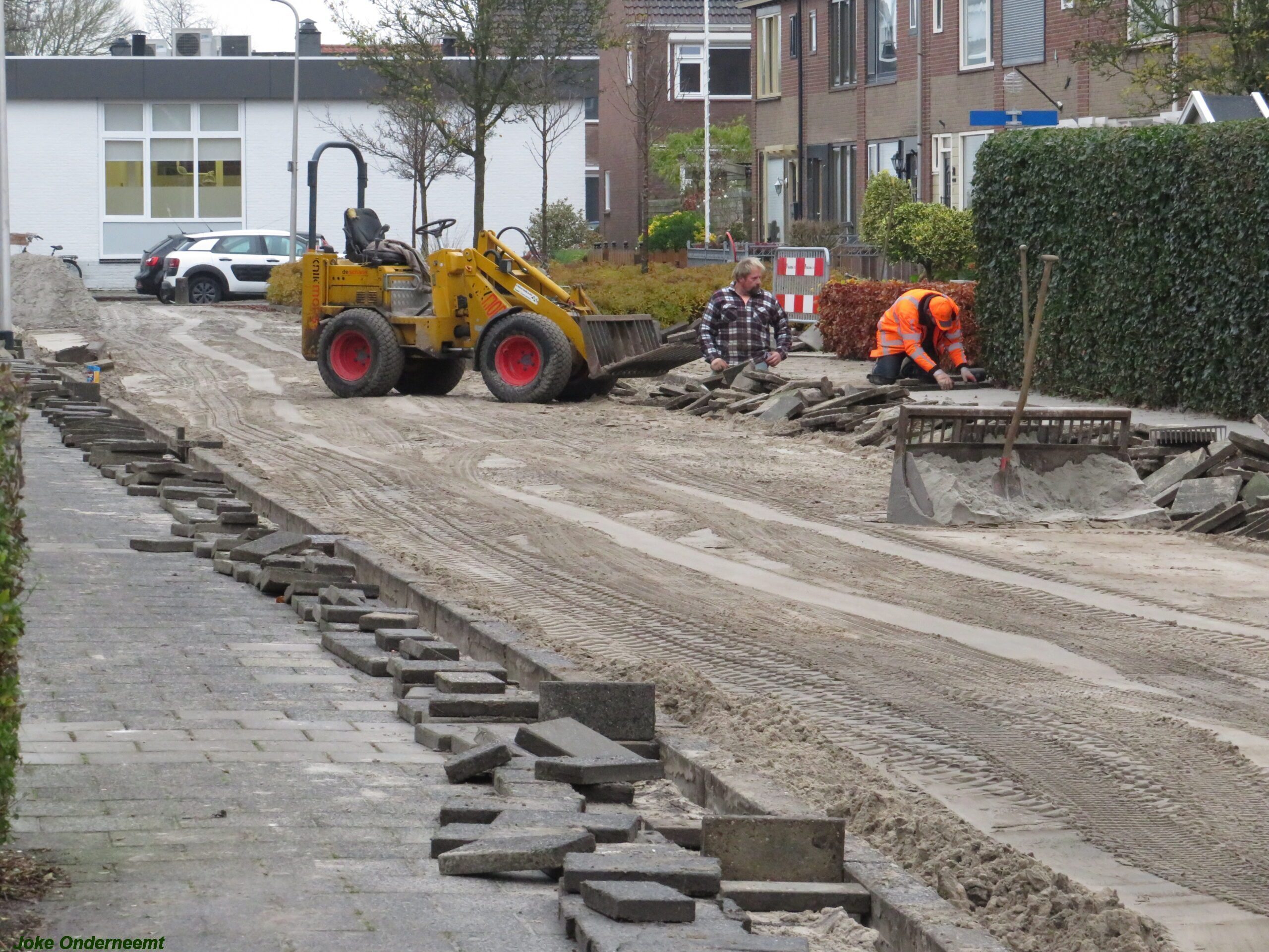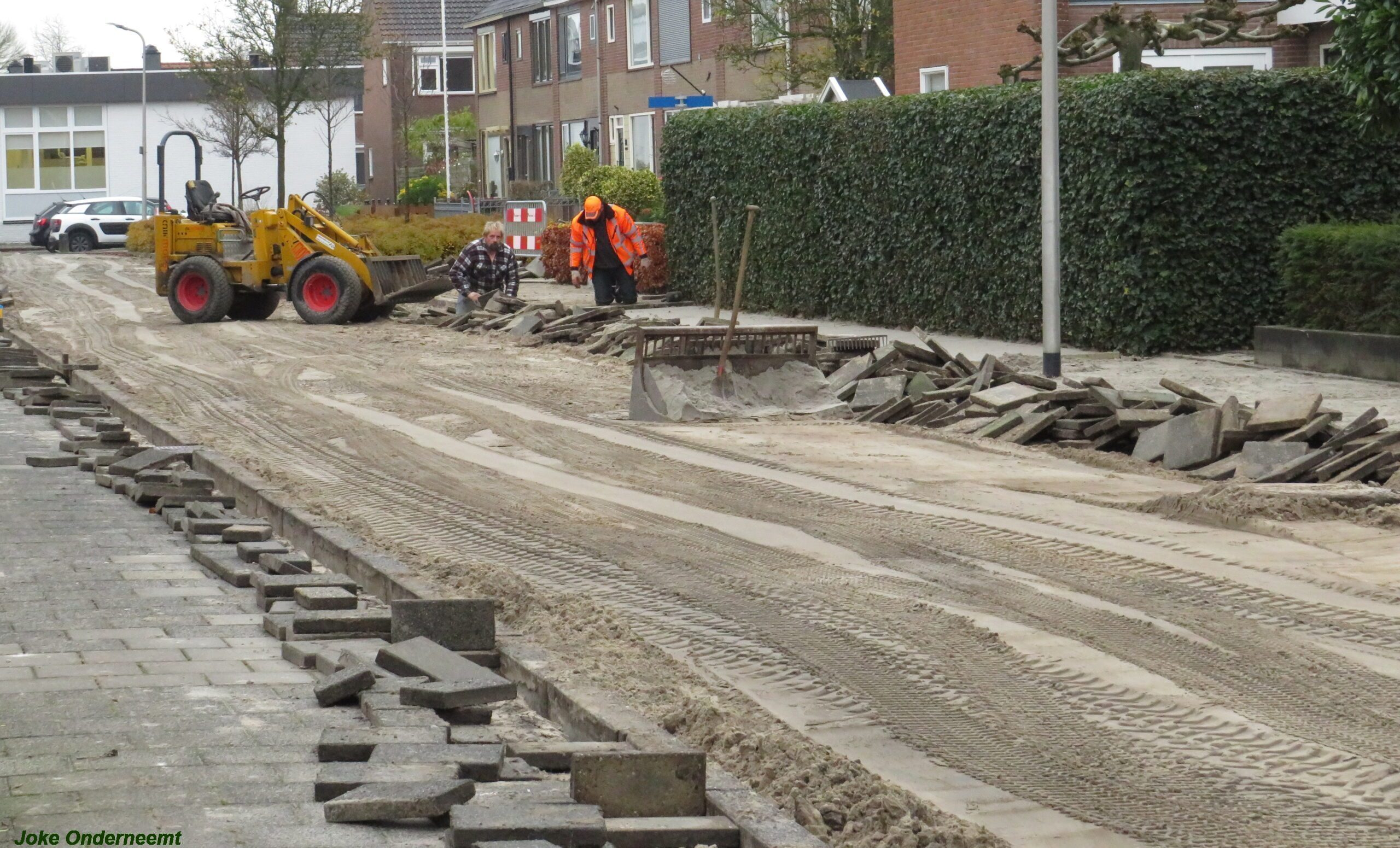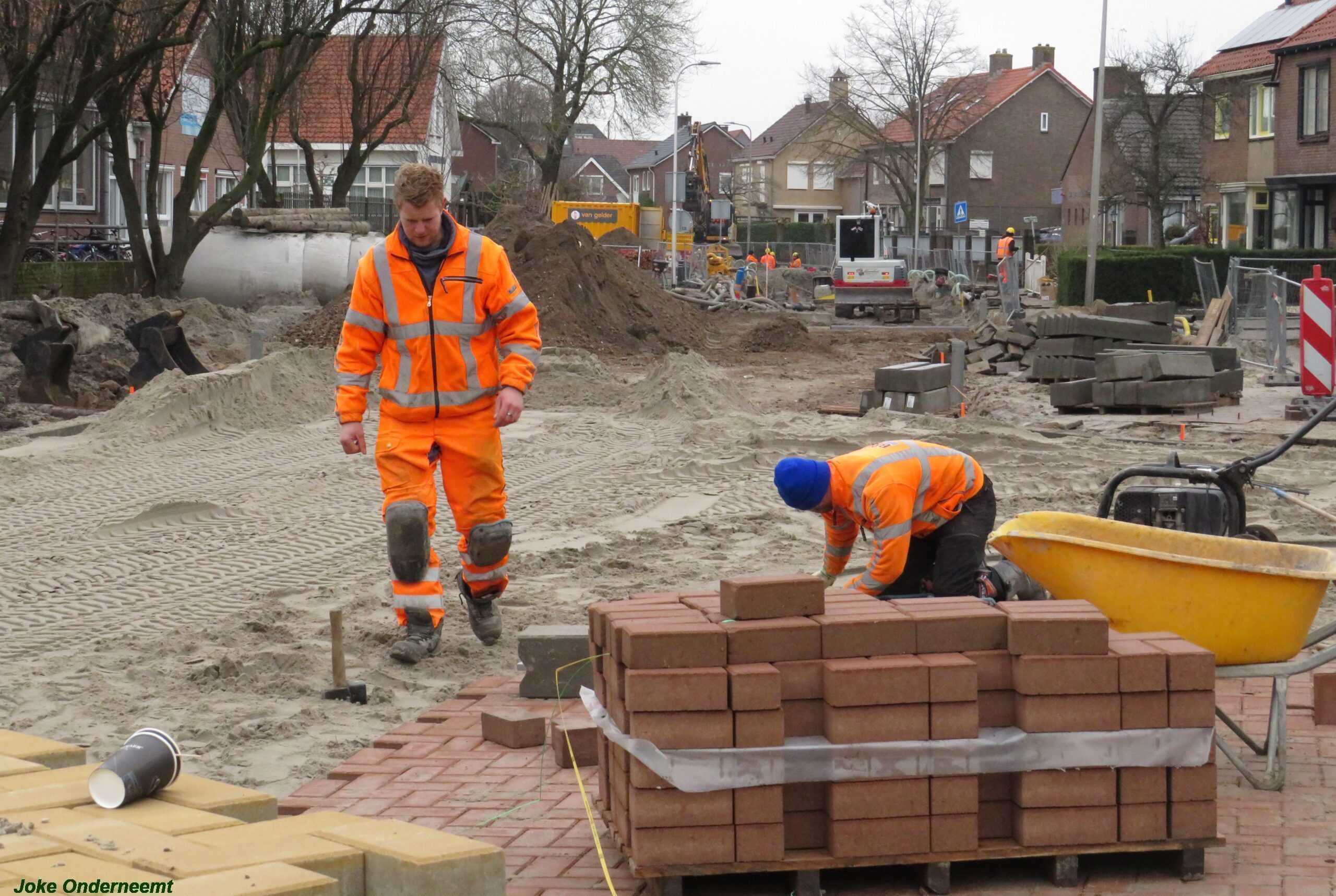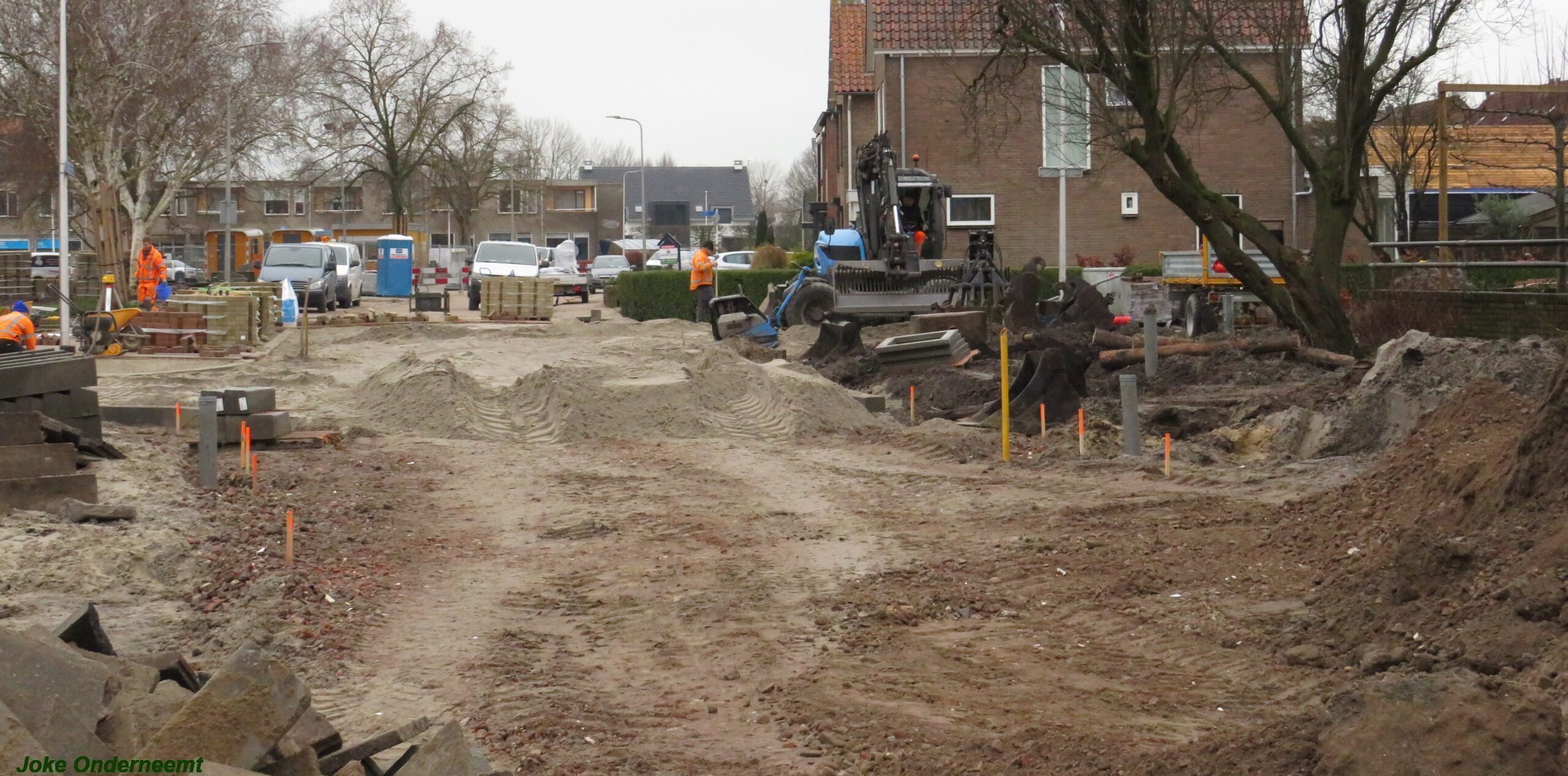 Er wordt keihard gewerkt daar aan de Jan van Arkelstraat , want het is de bedoeling dat in de kerstvakantie de hele Jan van Arkelstraat weer even helemaal toegangelijk is voor het verkeer. Deze weken zijn er vaak verkeersregelaars te zien die helpen zo nodig het verkeer in goede banen te leiden, maar ook de schoolkinderen zijn ze behulpzaam.