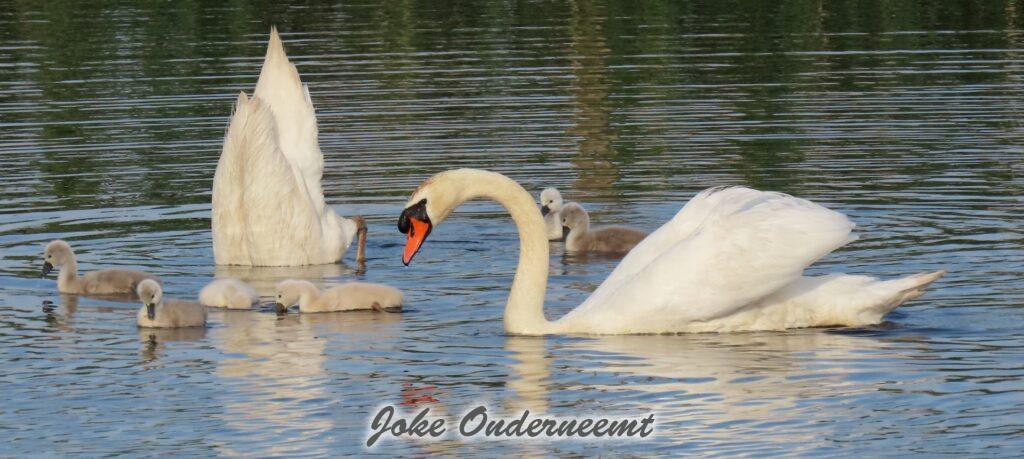 Zo ook deze zwanen met jonkies