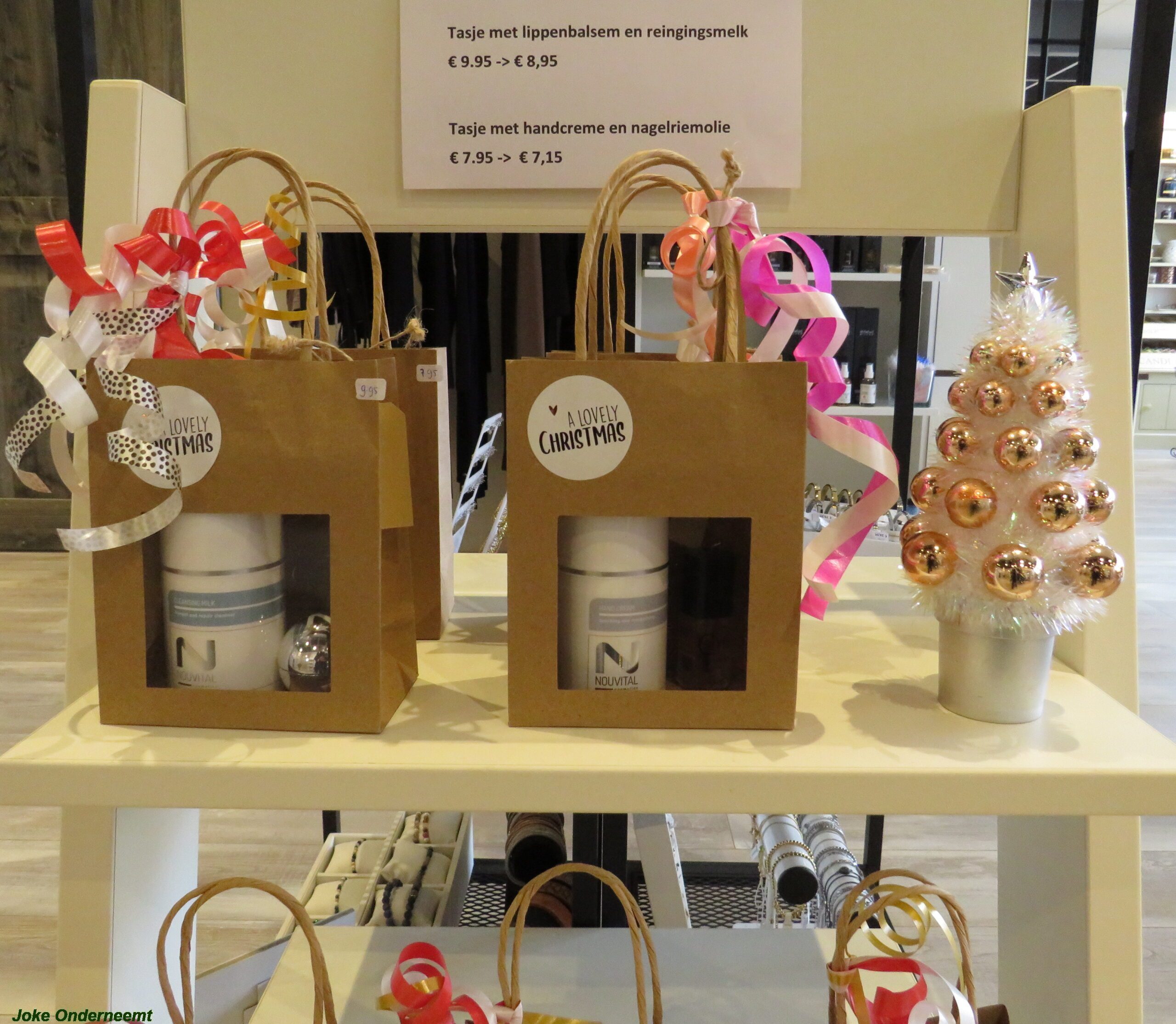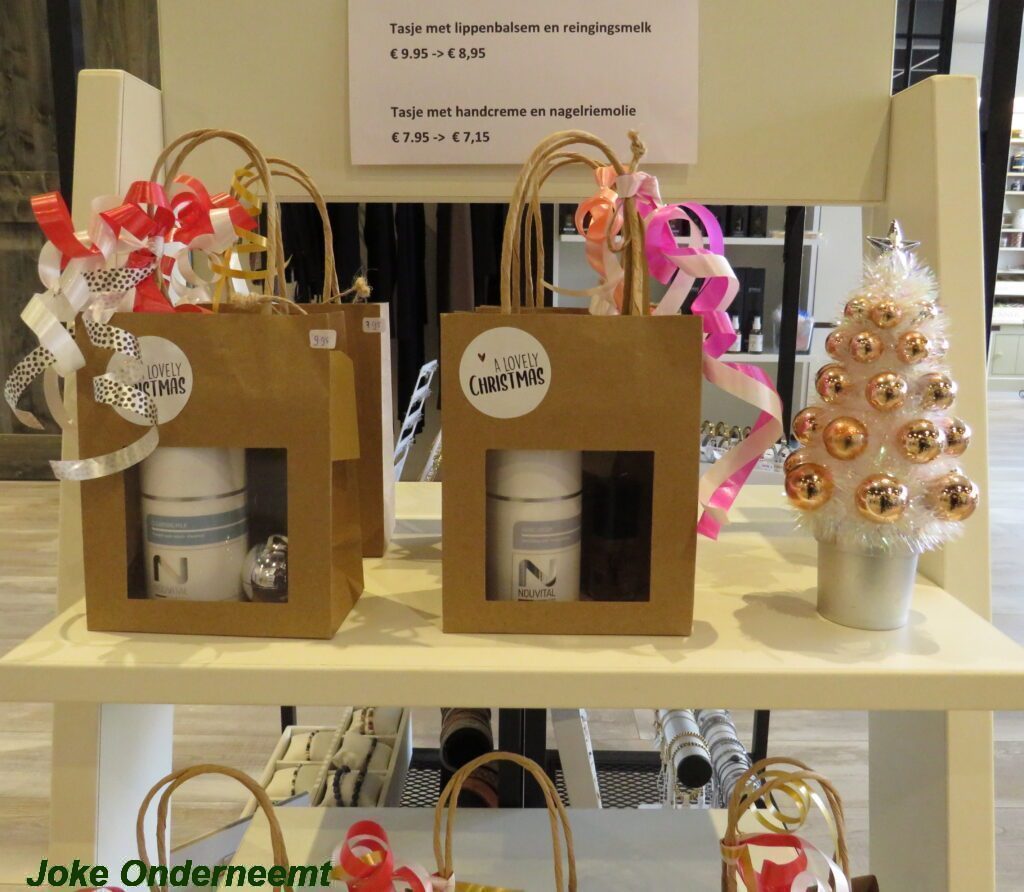 Maar weet u het soms niet wat u wilt geven, dan wordt het u gemakkelijk gemaakt door de mooi ingepakte cadeautasjes van Nouvital van het verzorgings product uit de salon. En in die mooie nieuwe salon kunt u natuurlijk ook terecht voor een heerlijke “winterbehandeling”. Ik heb eventjes om het hoekje gekeken in de salon en dat ziet heel uitnodigend uit moet ik zeggen .