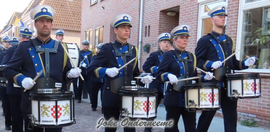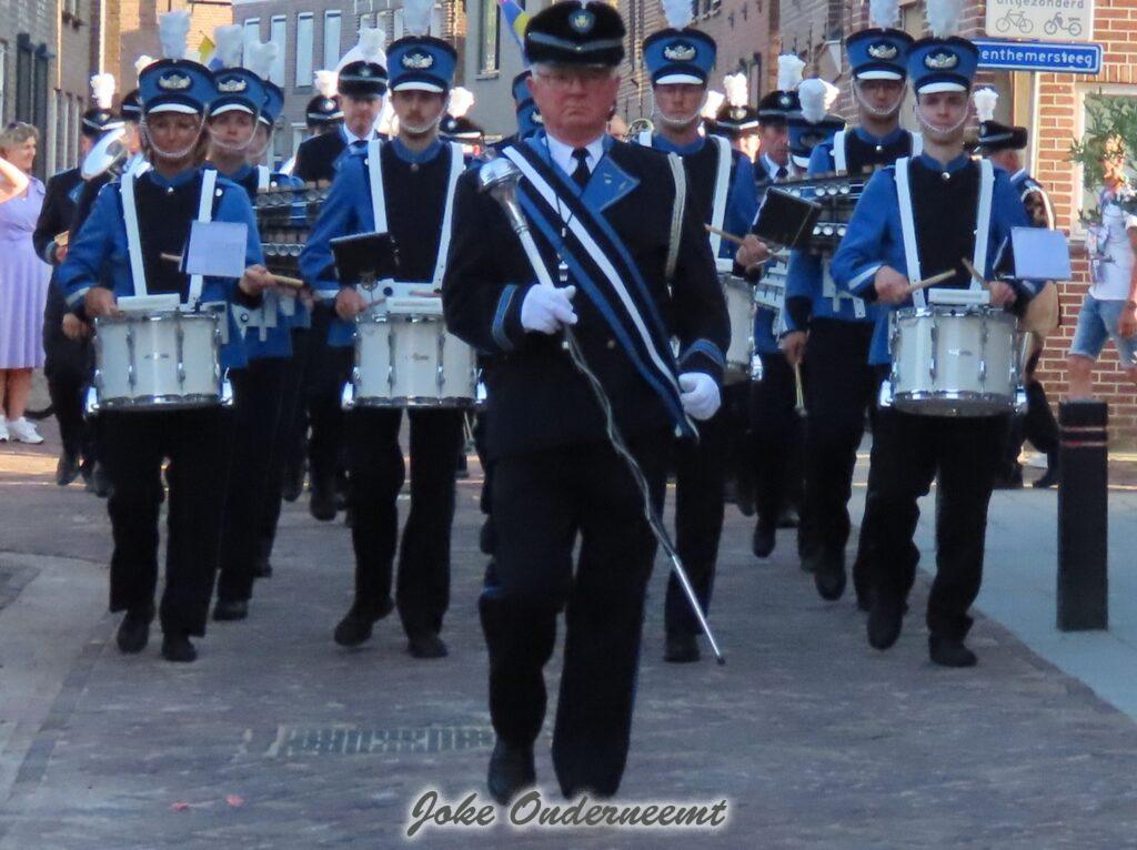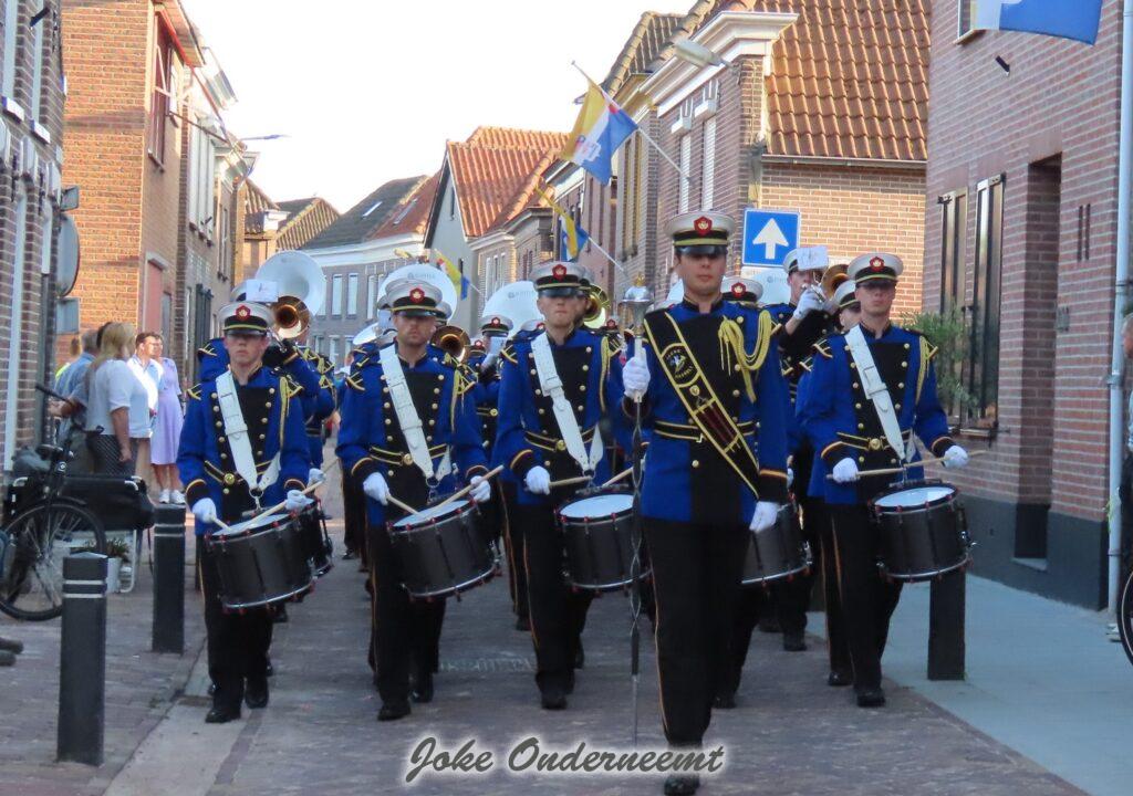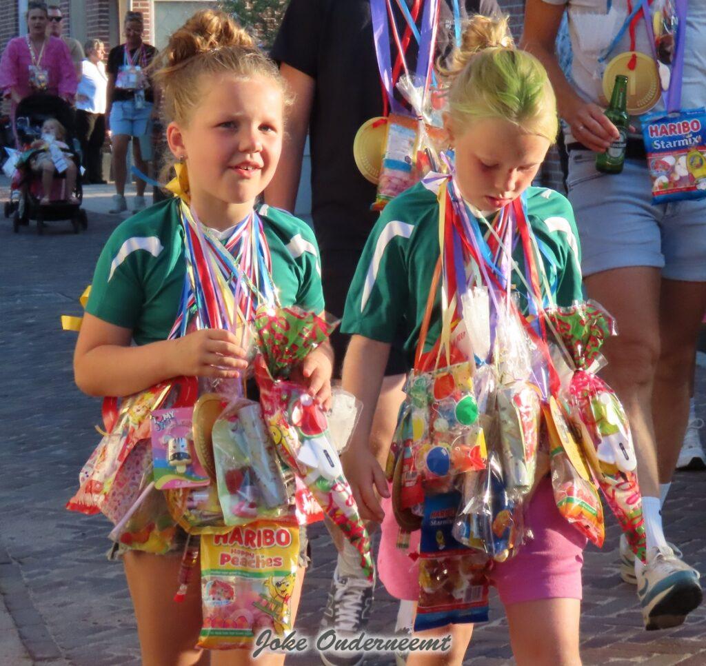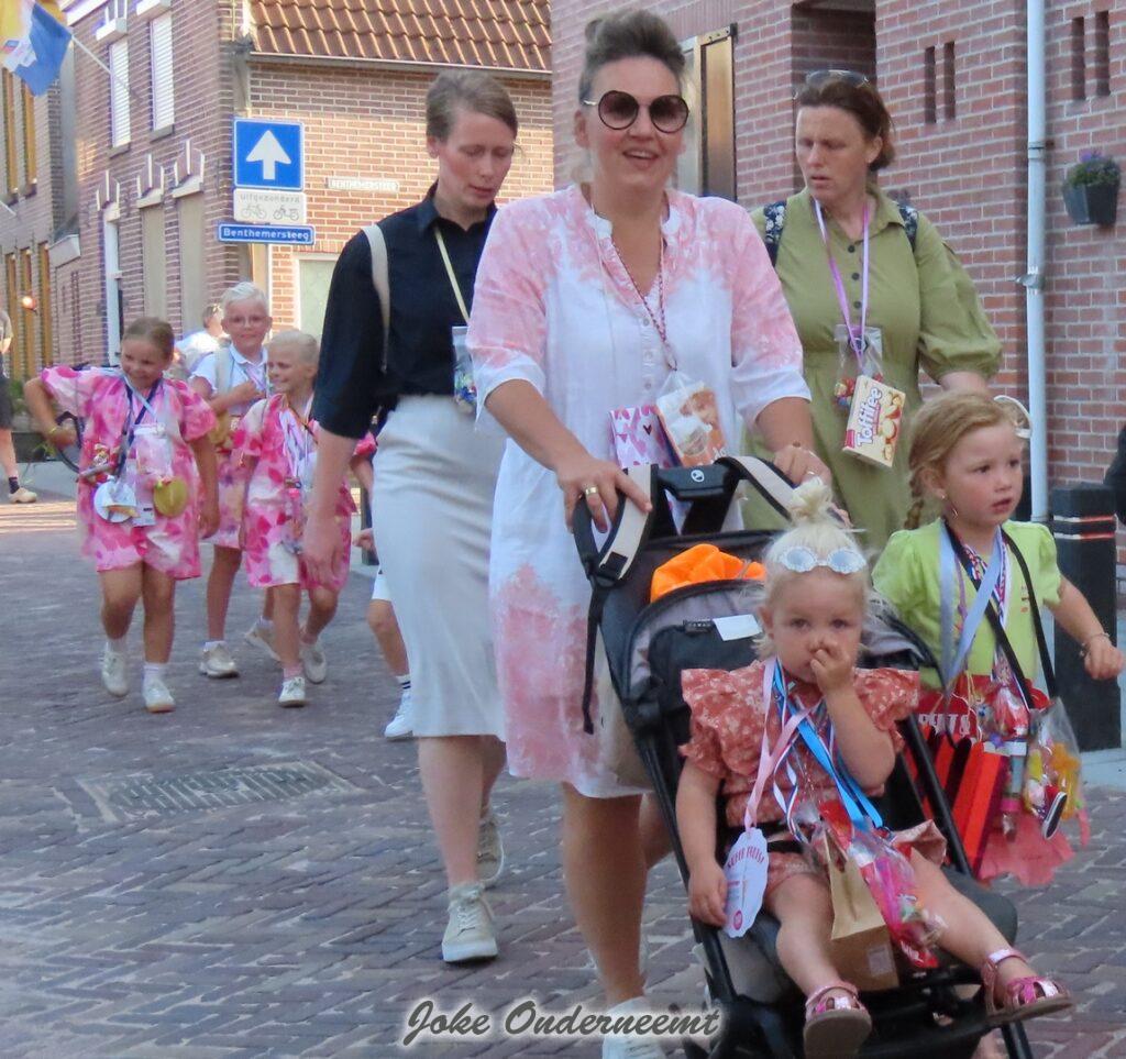 Drie mooie muziekkorpsen begeleide de vele wandelaars langst de route, waar heel veel mensen stonden te wachten met snoep en bloemen en kadootjes.