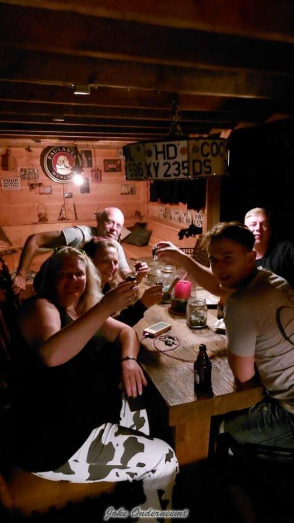 De tent weer opgeruimd en even een koude douche. Zo konden we daarna fris de avond in. We hebben enorm gelachen om de souvenirs die we hebben mee gekregen. Klapsigaretten! We hadden in de auto er al verschrikkelijk om gelachen.. Paul was de sjaak en een andere gast. Tranen over de wangen.