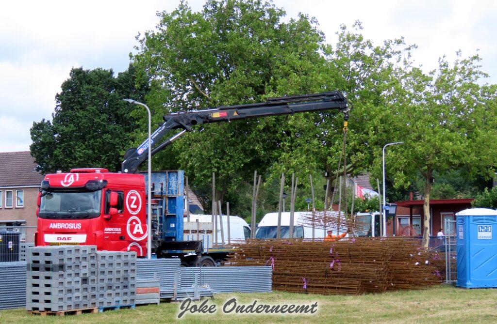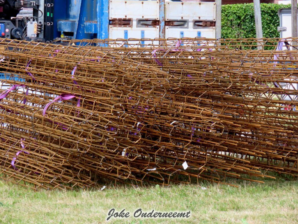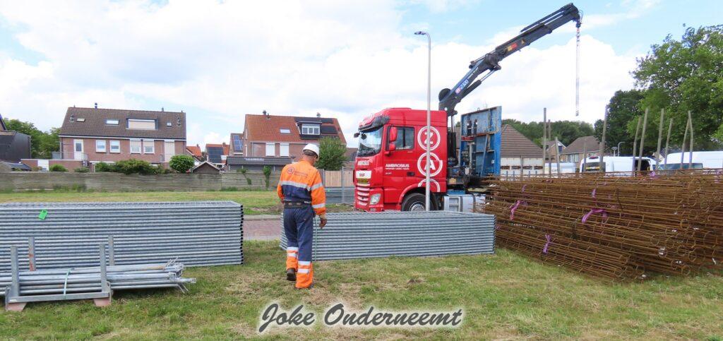 Ook wagens met cement ook wel betonmixers genoemd, zullen er veel komen en gaan want ze gaan de funderingspalen niet heien maar ze draaien ze erin met cement.