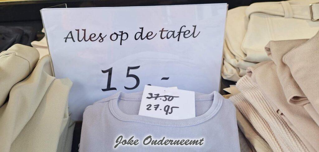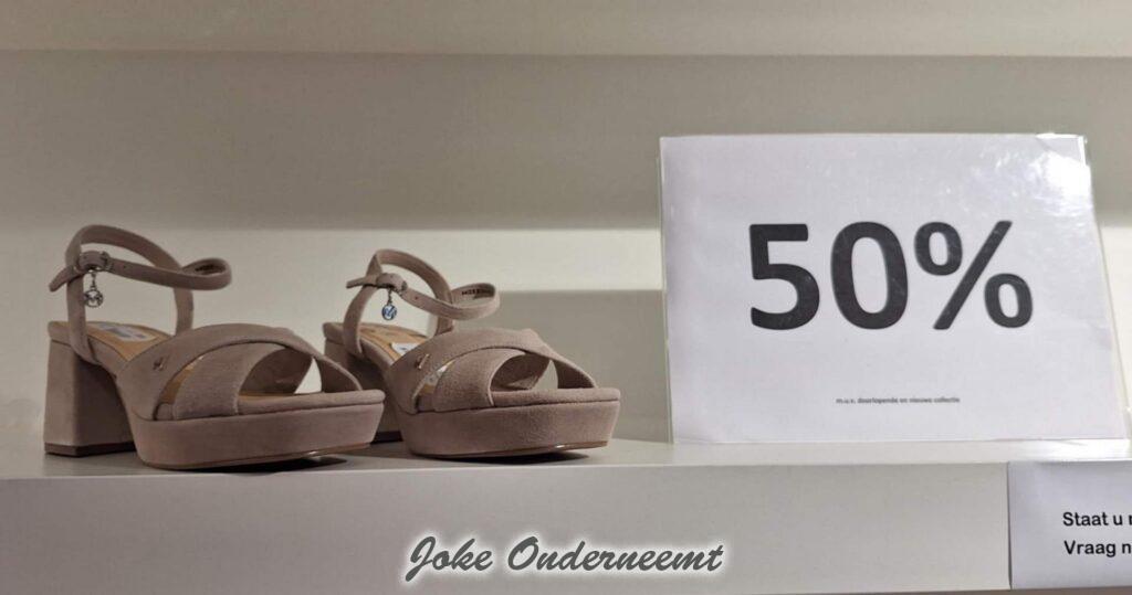 Maar loop gerust even naar binnen want ook daar hoge korting op schoenen en kleding..