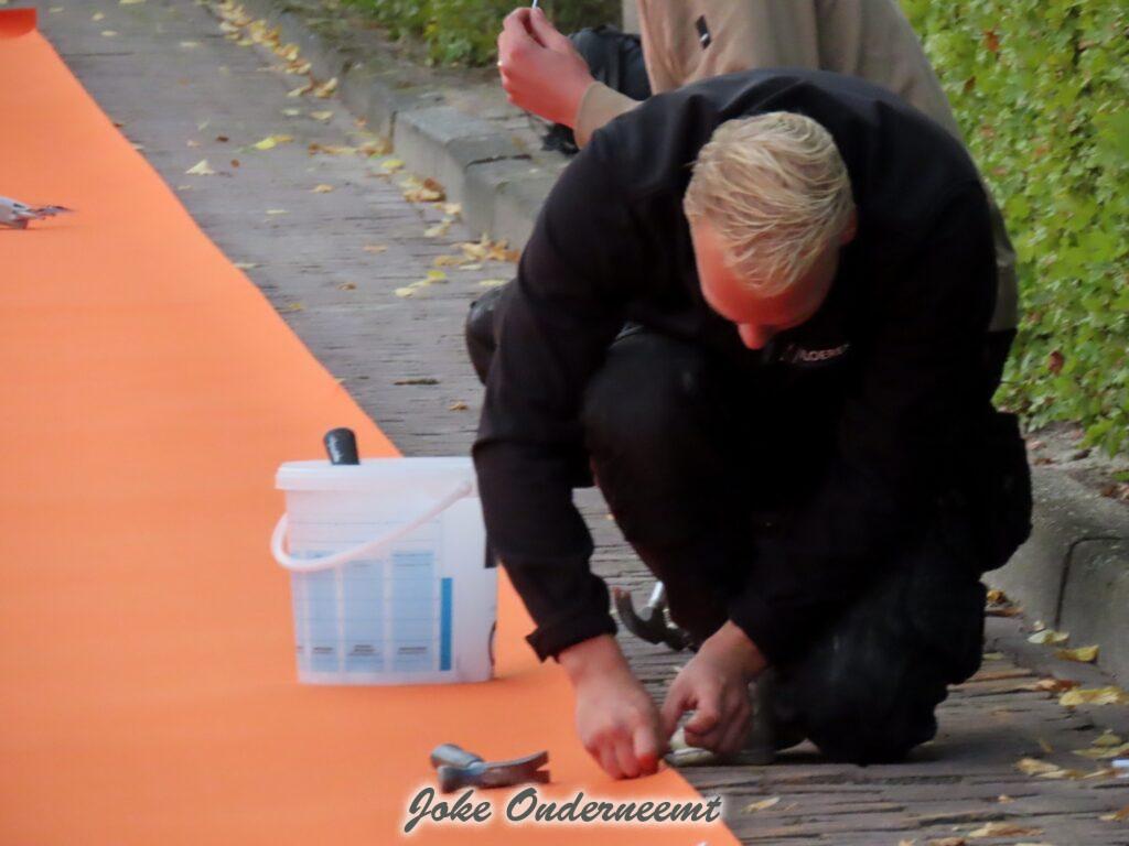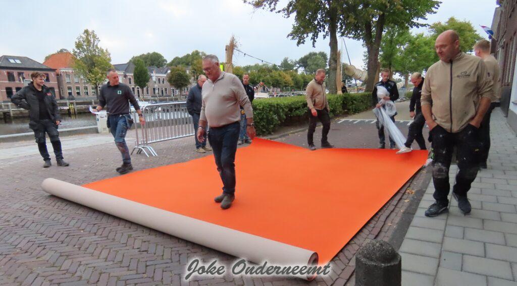 Maar ik ben even wezen kijken en er worden heel veel meters oranje tapijt uitgerold op de looproute…
