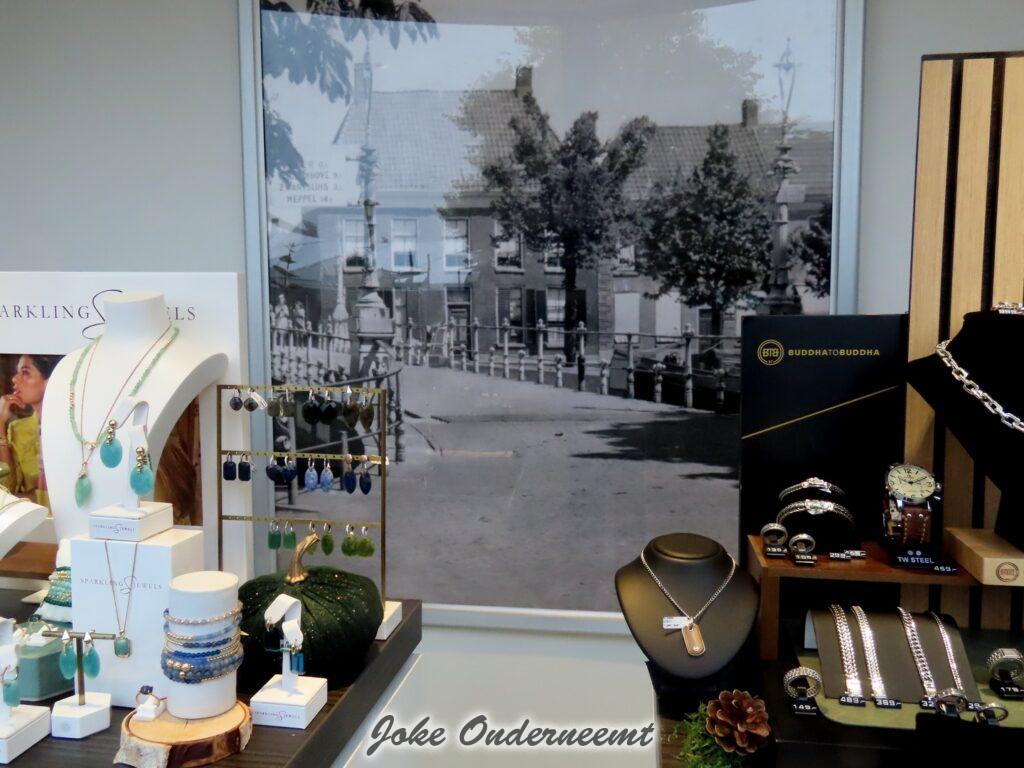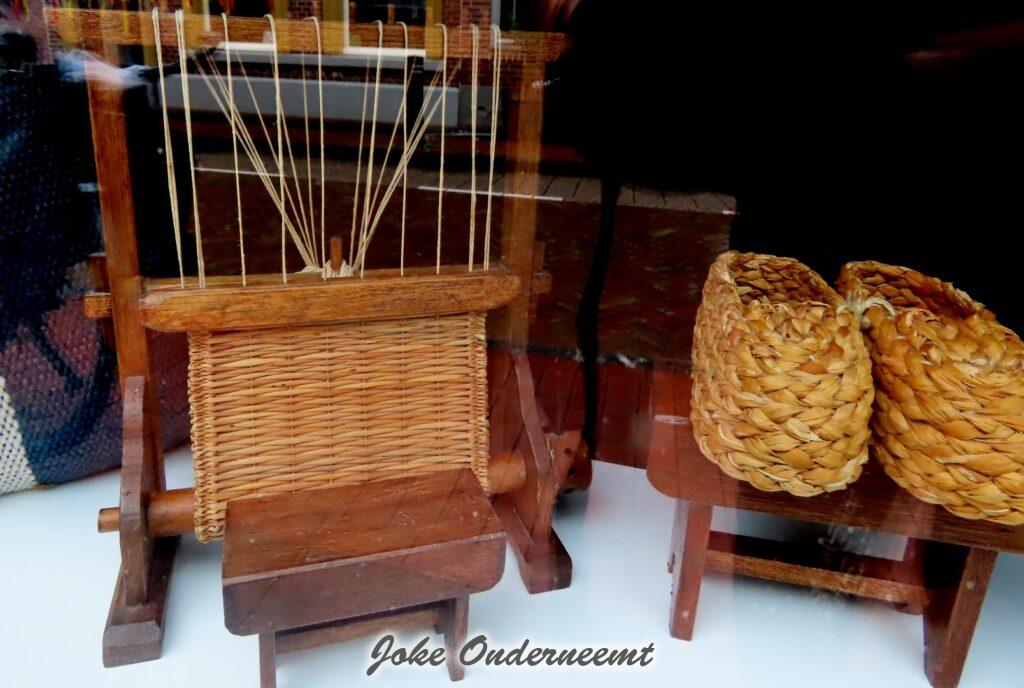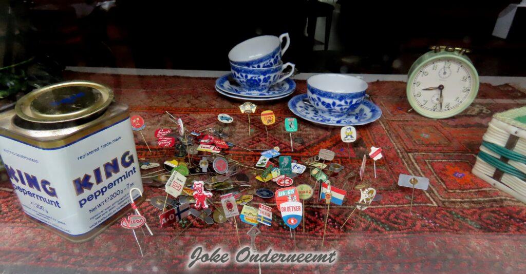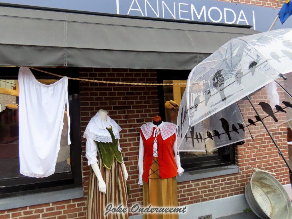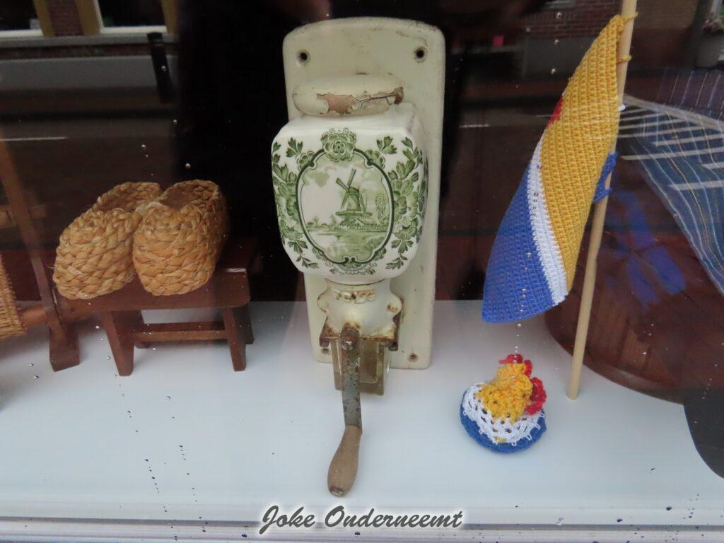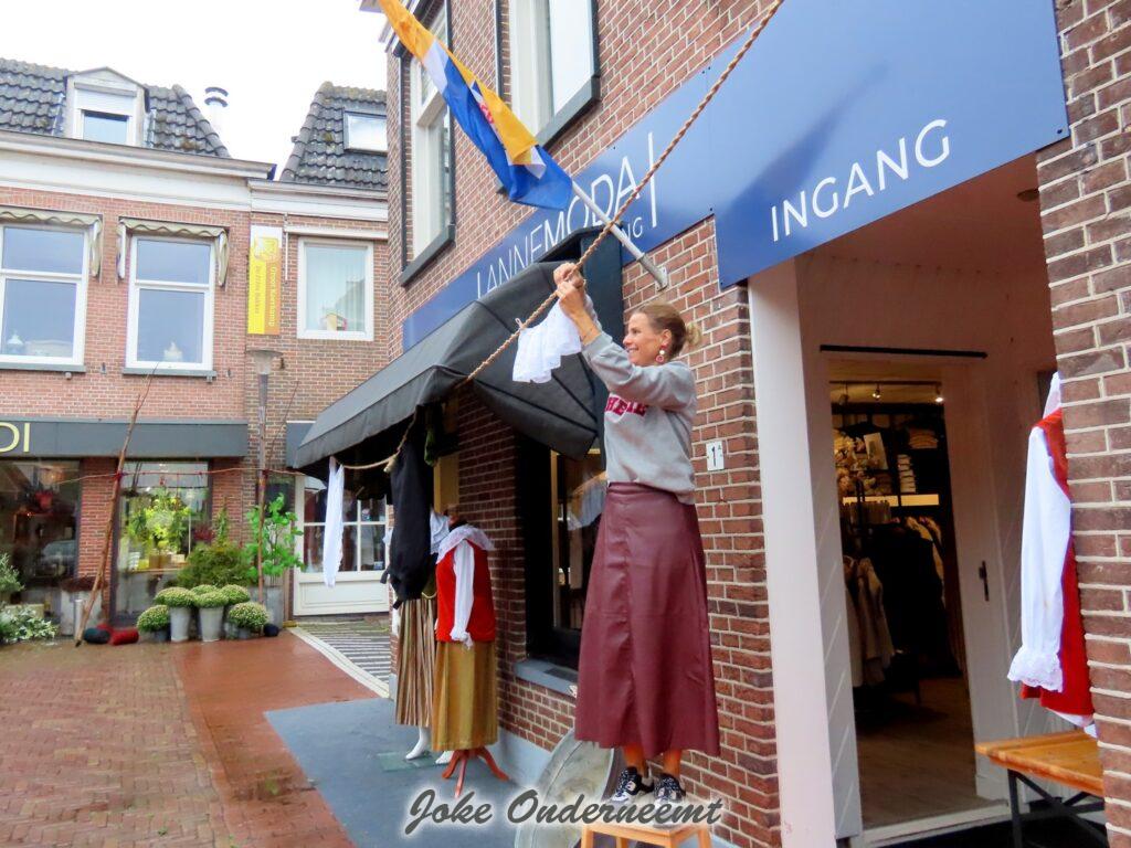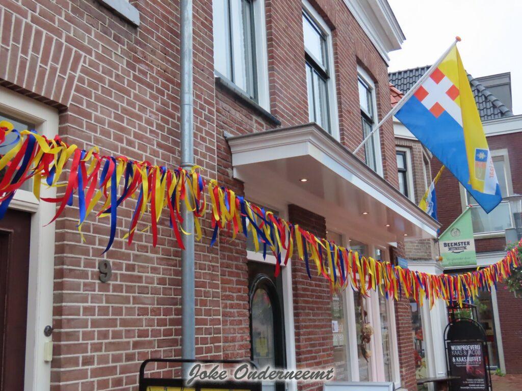 Vrolijke versieringen hangen in het centrum en oud heden staan her en der buiten en voor de ramen.