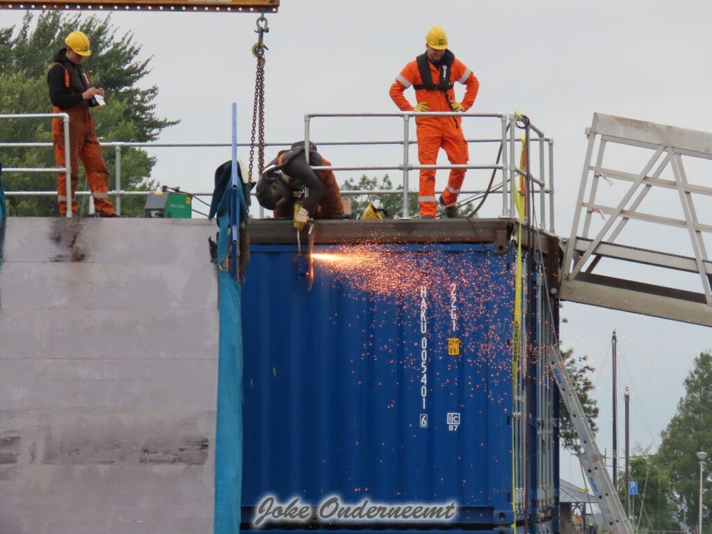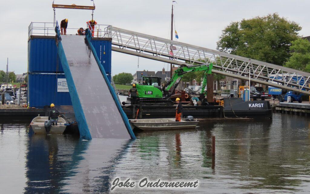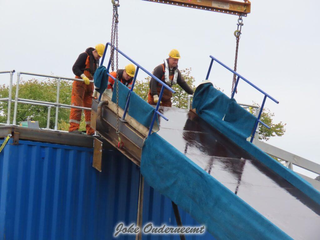 En het spectaculaire decor is er klaar voor, dankzij het keihard werken vandaag door medewerkers en veel vrijwilligers van de verschillende Waterbouw bedrijven.