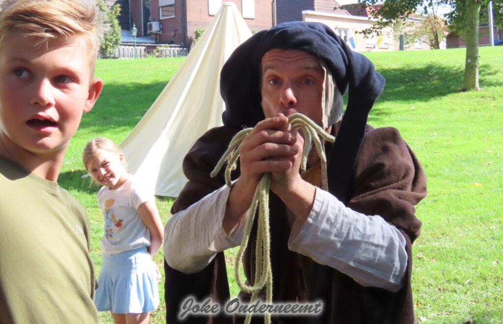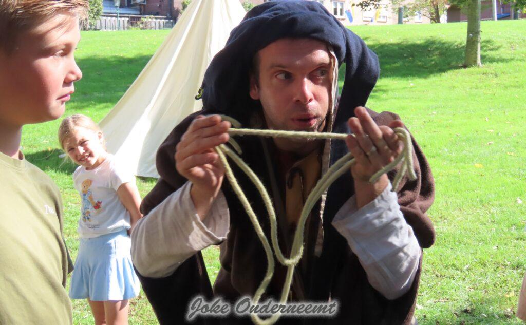 Maar hij kon ook “toveren” en dat was natuurlijk ook leuk om te zien een touw aan stukjes en hup weer aan elkaar, en ik heb goed opgelet stond dichtbij …. maar nee toch geen idee hoe dat ging.