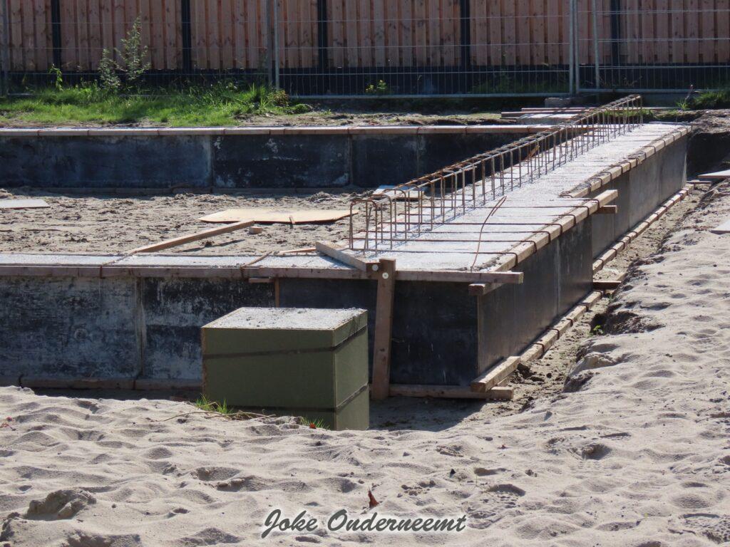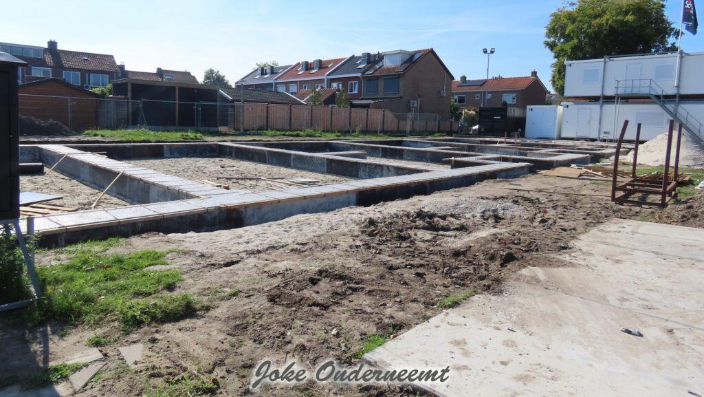 De fundering ligt en de bouwput waar de lift komt is ook al zichtbaar.