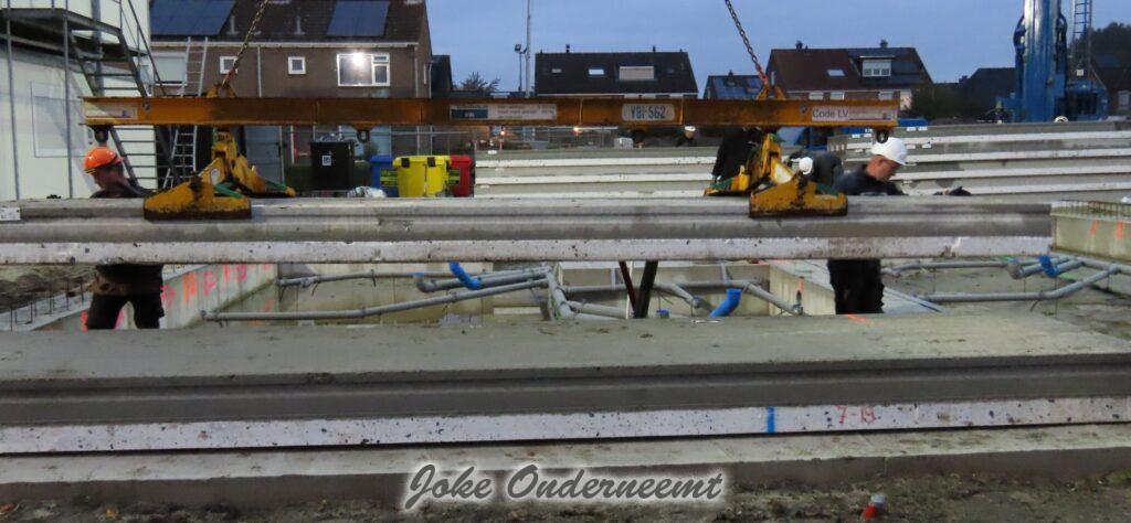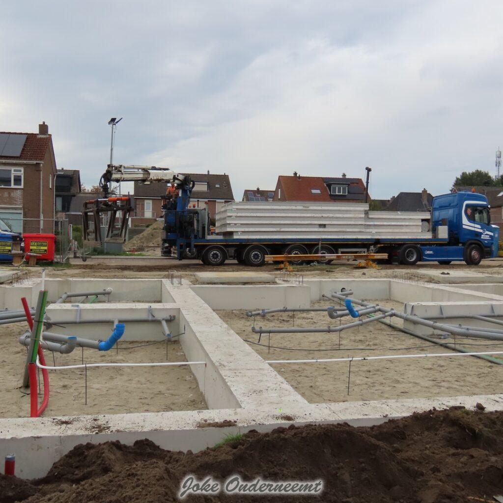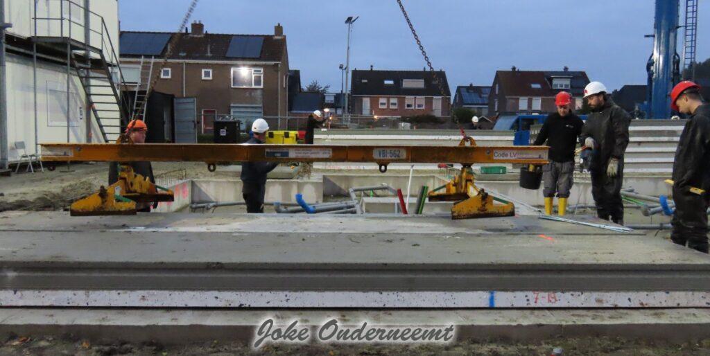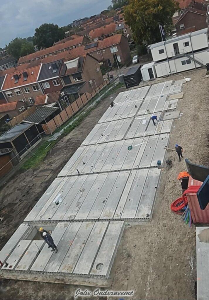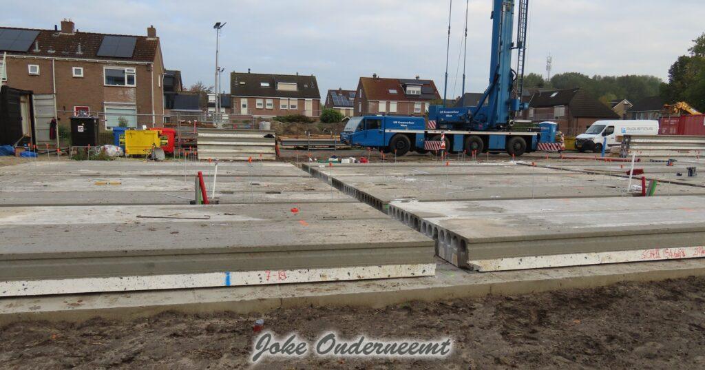 En dat betekende dat de vloerplaten gelegd gingen worden bij de nieuw te bouwen woningen aan de Mr Steenbergenstraat . Dit alles in opdracht van Wetland Wonen ..