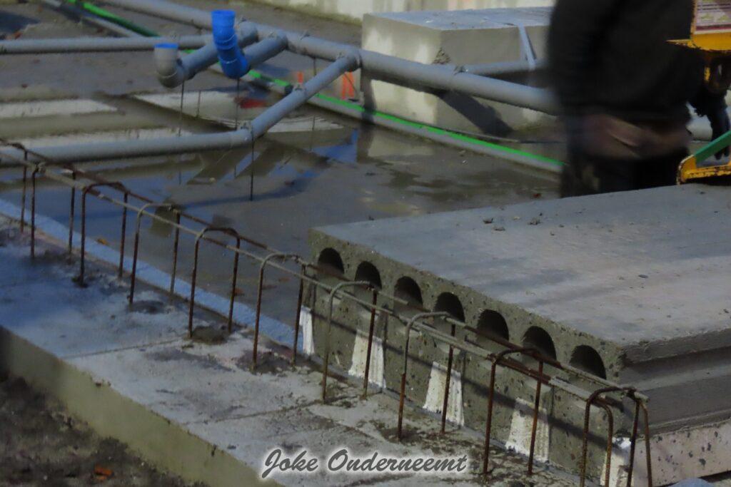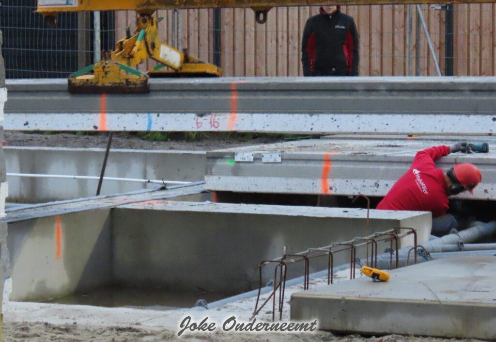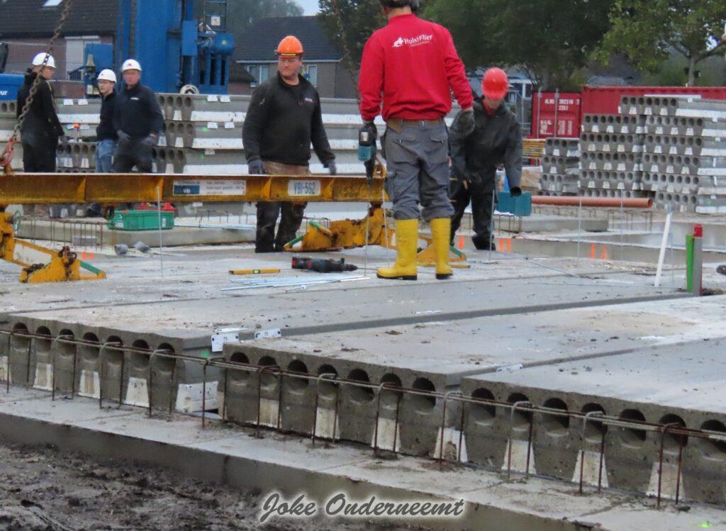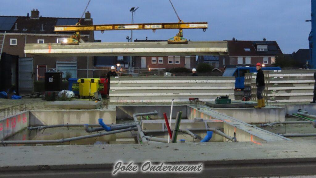Maar vanmorgen dus om 7.30 uur heen gegaan en toen werd de eerste vloerplaat net gelegd….was ik weer net op tijd bij net als toen de eerste heipaal erin ging.