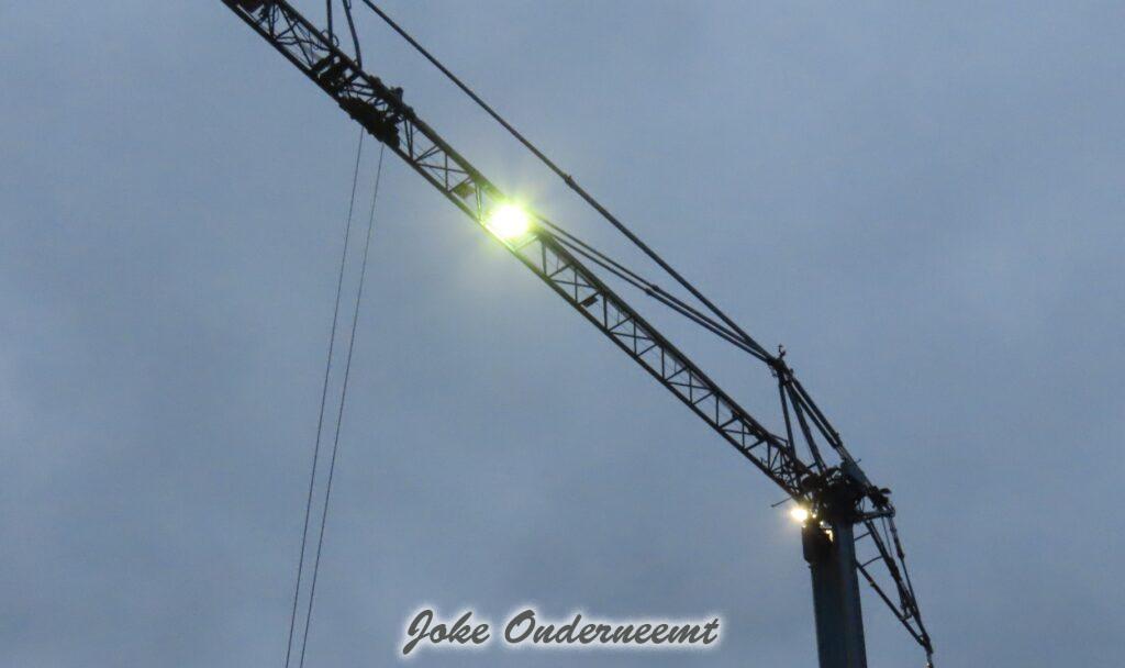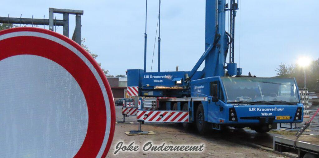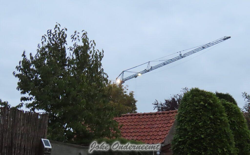 Vanmorgen zag ik om 7.00 uur een grote torenkraan achter mijn huis uitsteken van de Firma EJR Kraanverhuur Wilsum