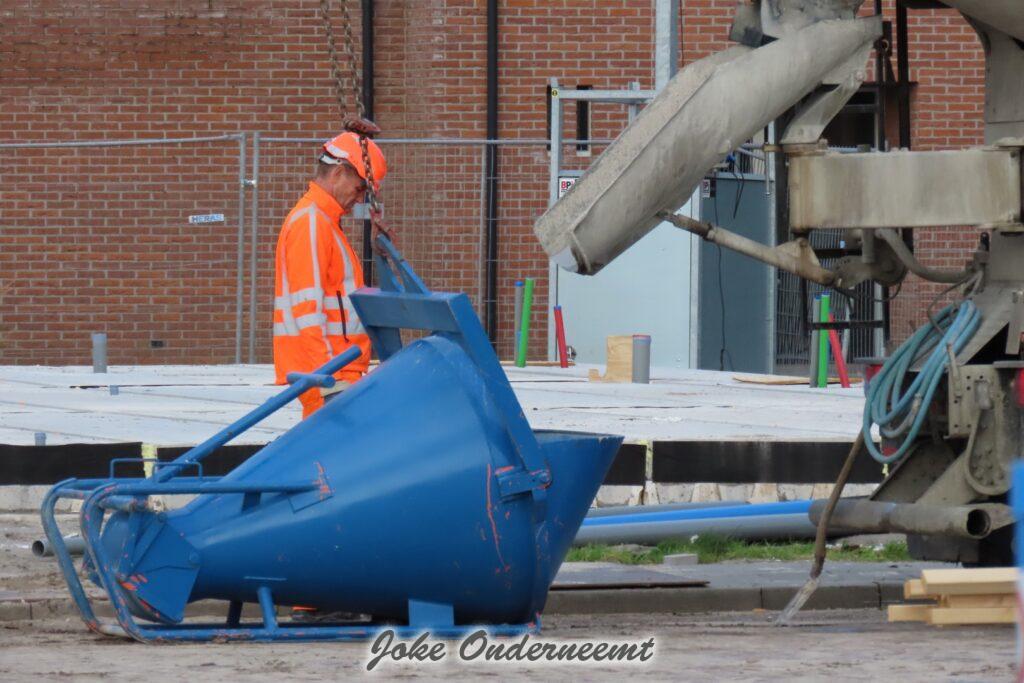 Aan de andere kant bij de laagbouw woningen zijn de vloerplaten nu ook gelegd, dus die gaan deze week denk ik ook wel de lucht in.