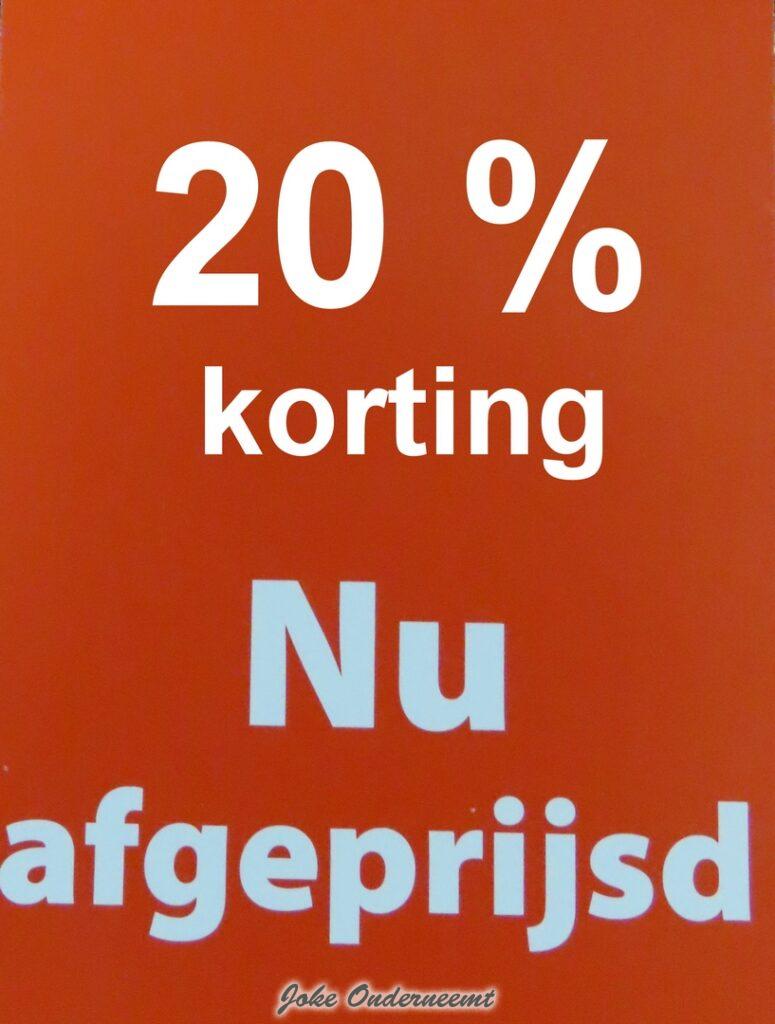 En als dat dan is gelukt, kun je nog extra geluk hebben want op alle artikelen met rode kaart krijgt u 20% korting!