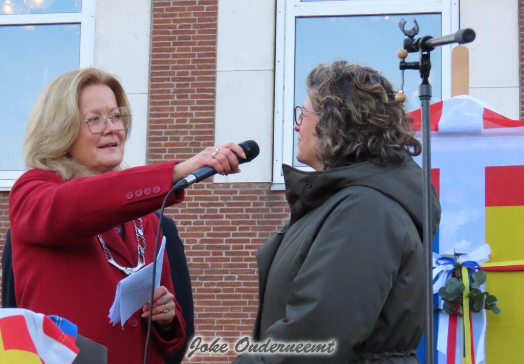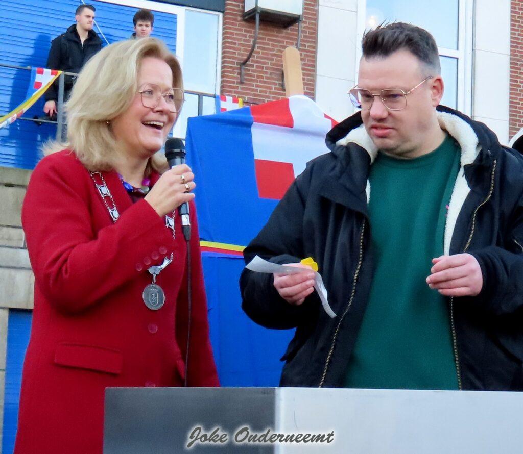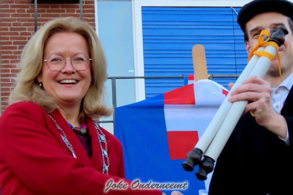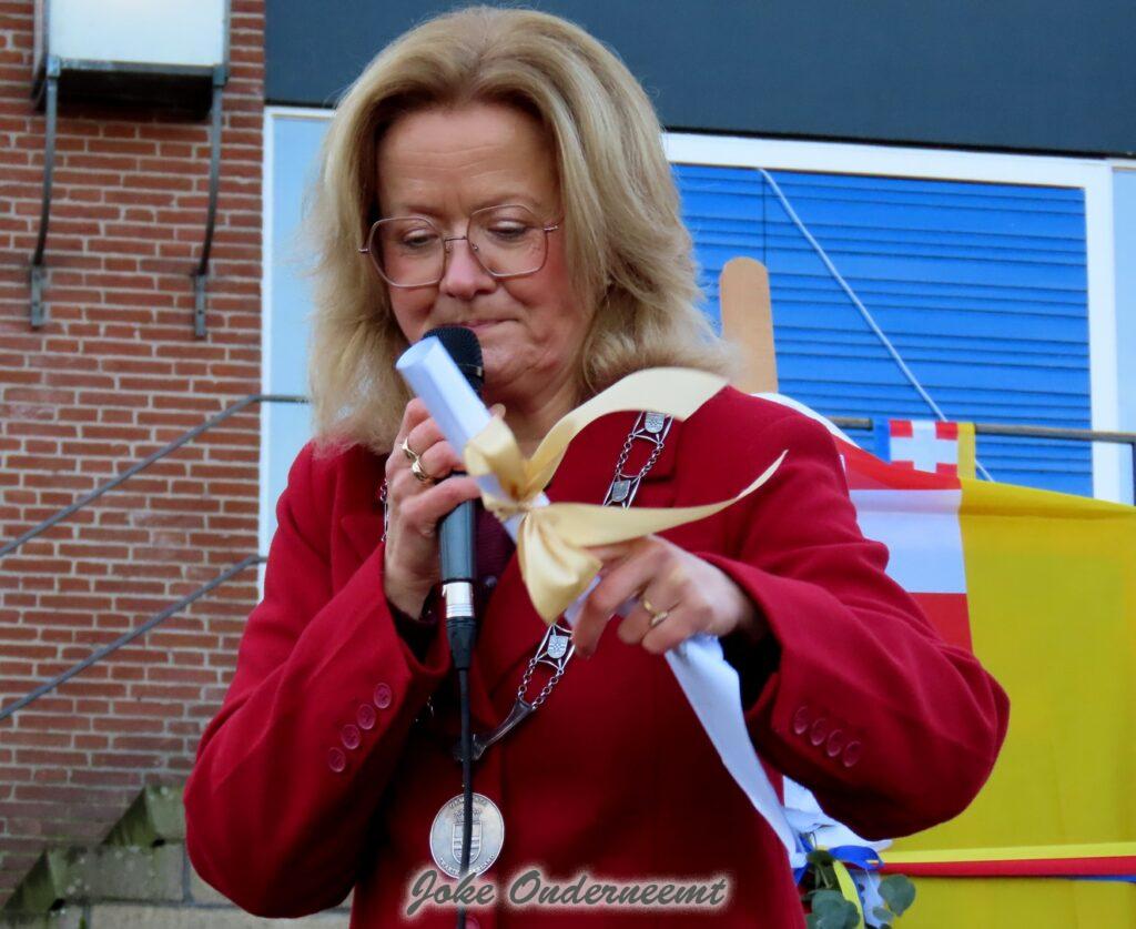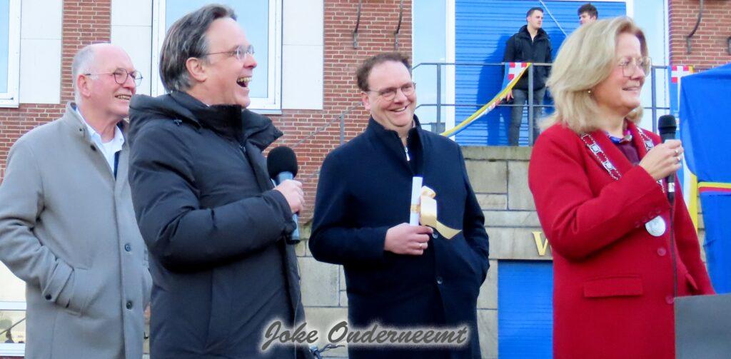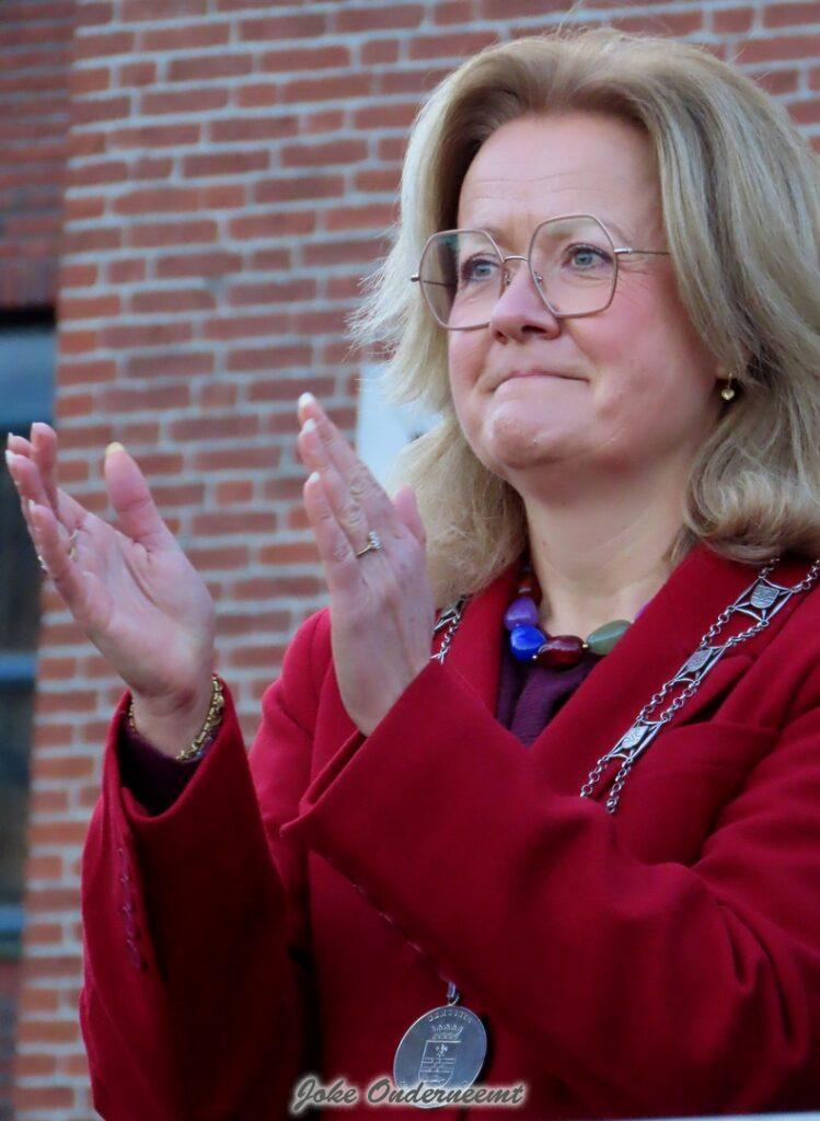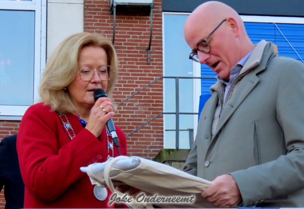 Veel mensen waren naar het Havenplein gekomen om bij het afscheid te zijn… daar waren natuurlijke ook onze “oud burgemeester” Eddy Bilder en onze “nieuwe burgemeester” zijn opvolger Judith Compagner bij aanwezig.