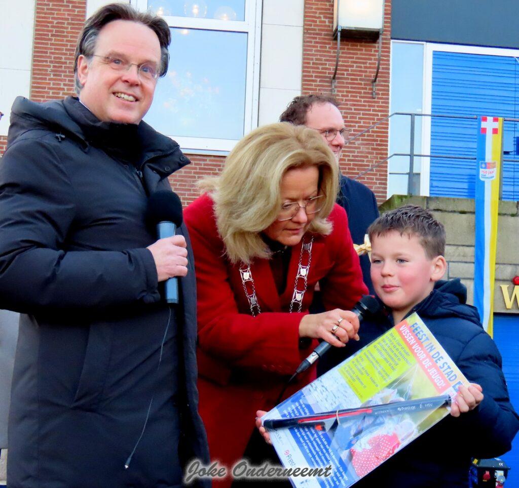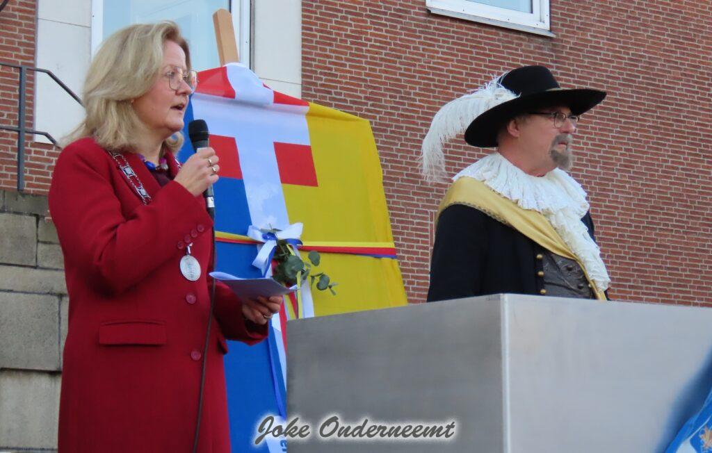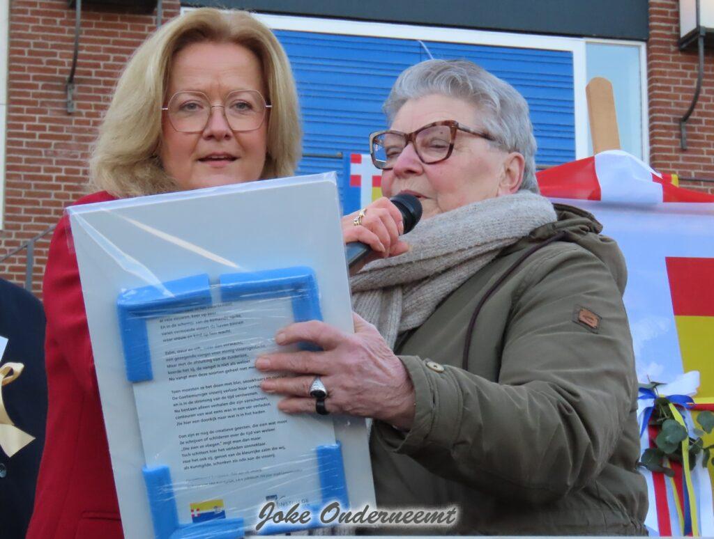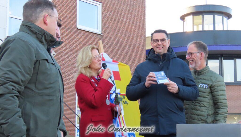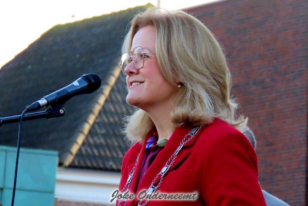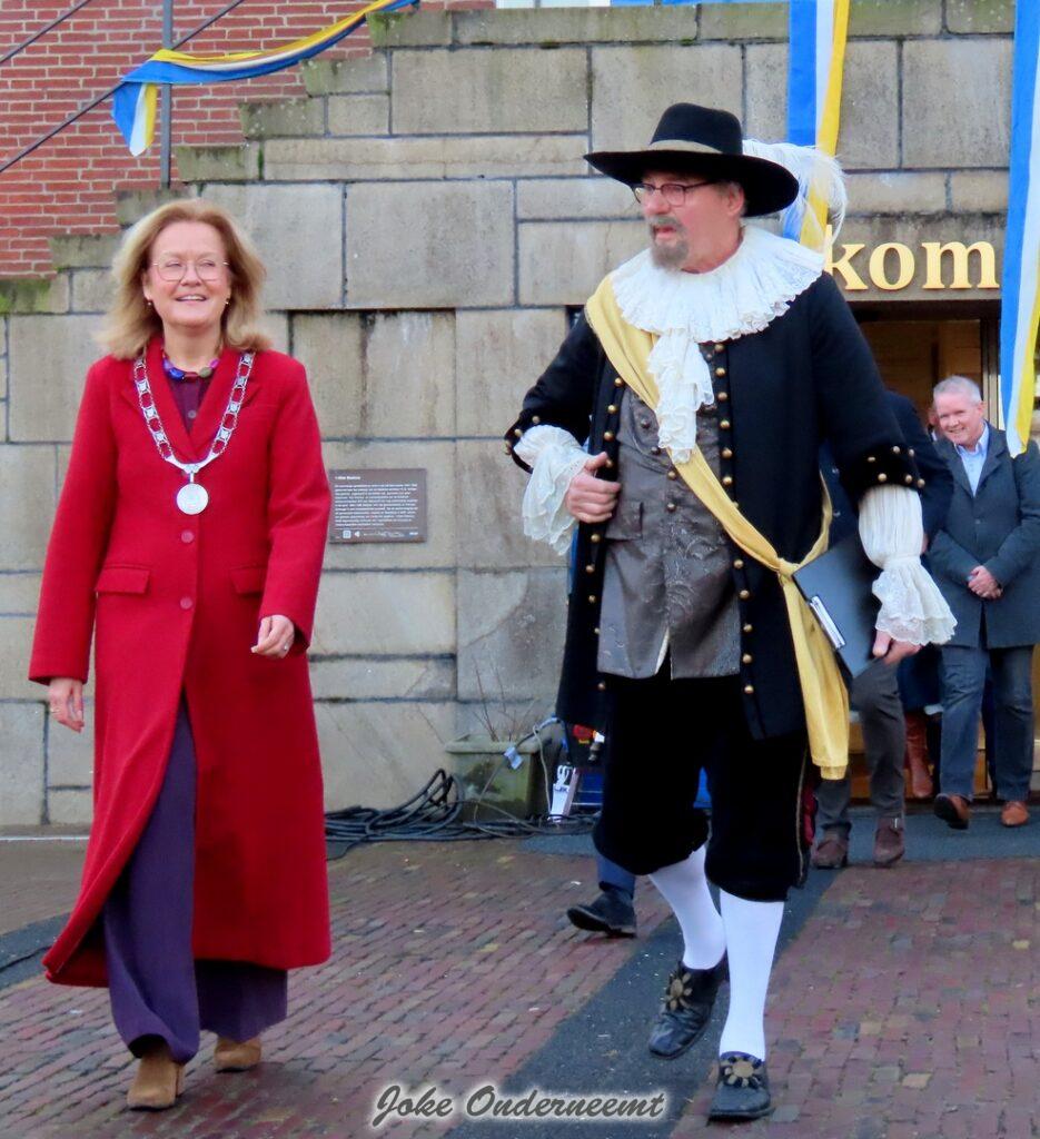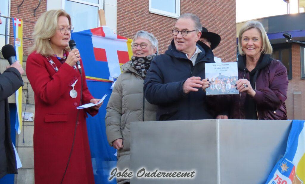 Veel mensen waren naar het Havenplein gekomen om bij het afscheid te zijn… daar waren natuurlijke ook onze “oud burgemeester” Eddy Bilder en onze “nieuwe burgemeester” zijn opvolger Judith Compagner bij aanwezig.