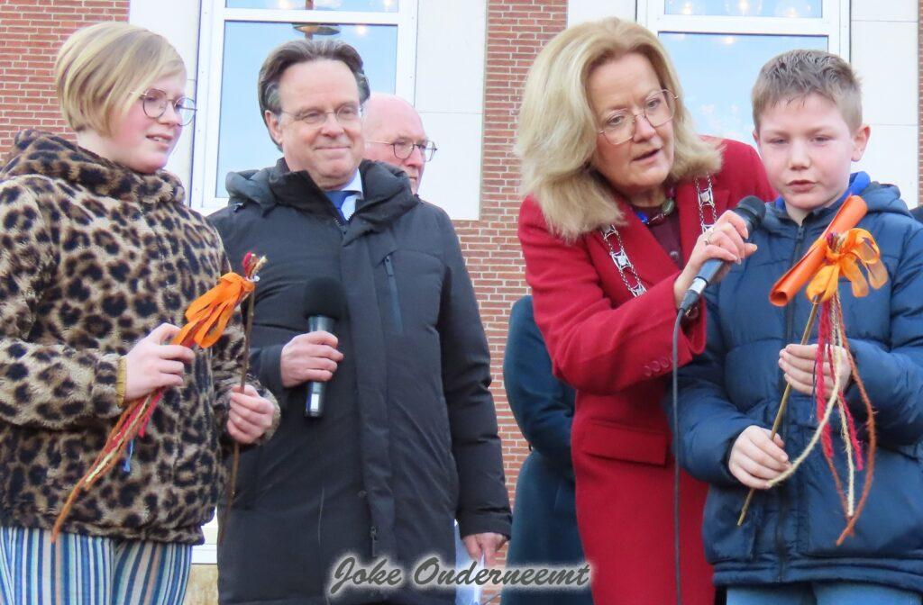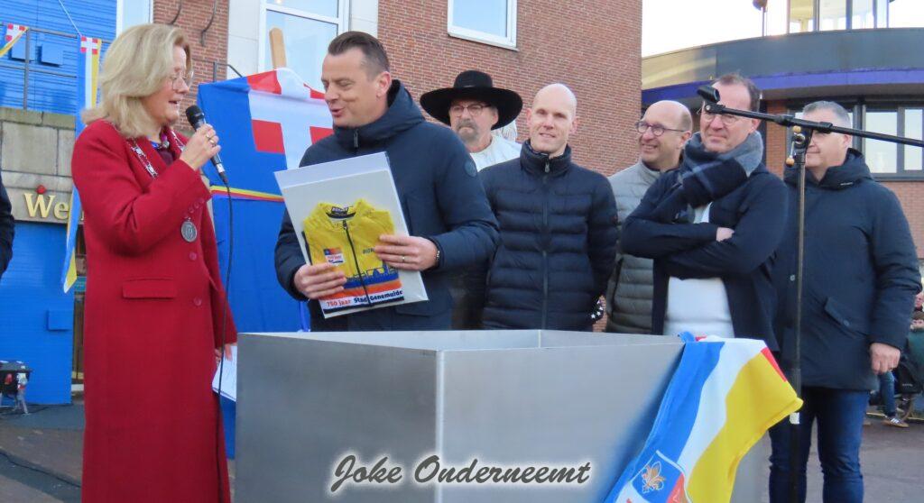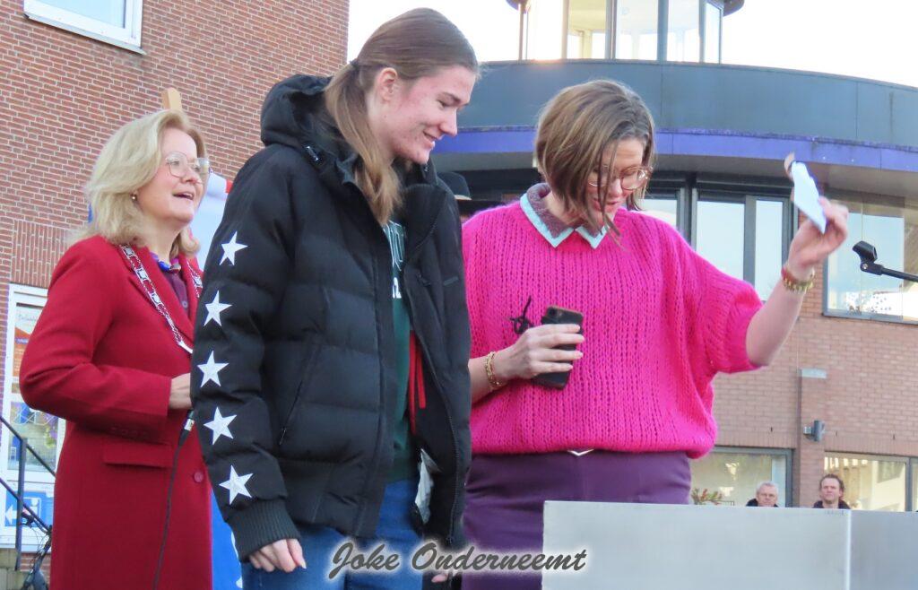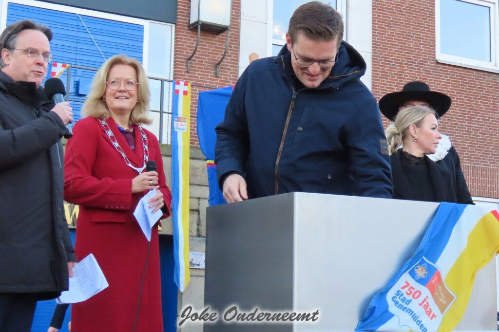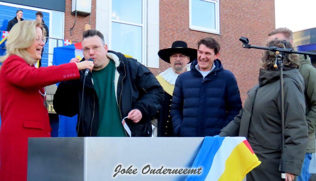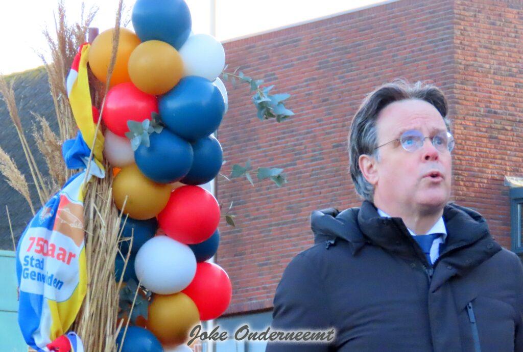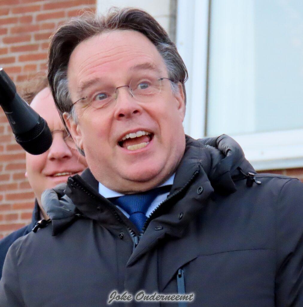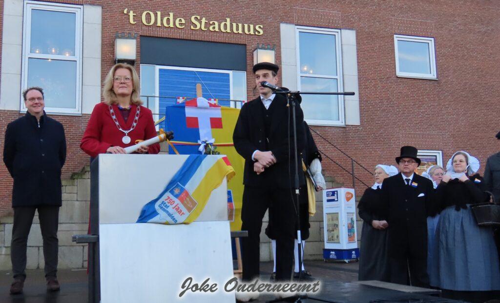 Veel mensen waren naar het Havenplein gekomen om bij het afscheid te zijn… daar waren natuurlijke ook onze “oud burgemeester” Eddy Bilder en onze “nieuwe burgemeester” zijn opvolger Judith Compagner bij aanwezig.