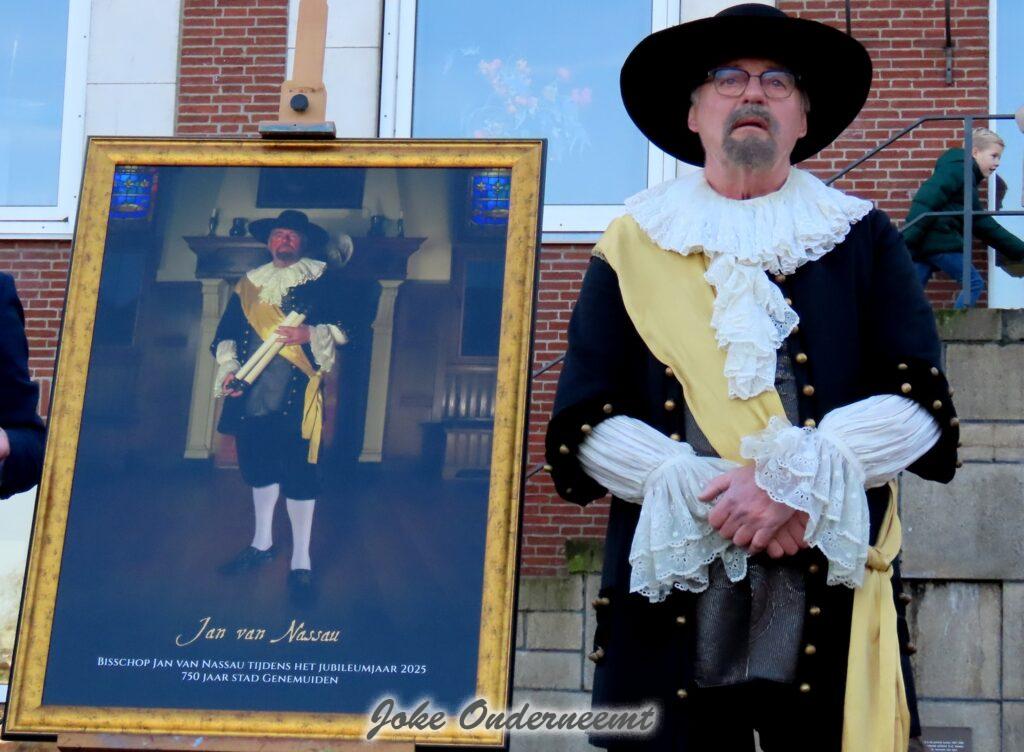 Ook kreeg Jan van Nassau een groot statieportret aangeboden, te zien in vol ornaat zoals hij dit jaar door het leven is gegaan…. we kunnen grote bewondering voor die man hebben want hij is ongelooflijk vaak van gedaante verwisseld. Een duidelijk geëmotioneerde Jan van Nassau bedankte het publiek…