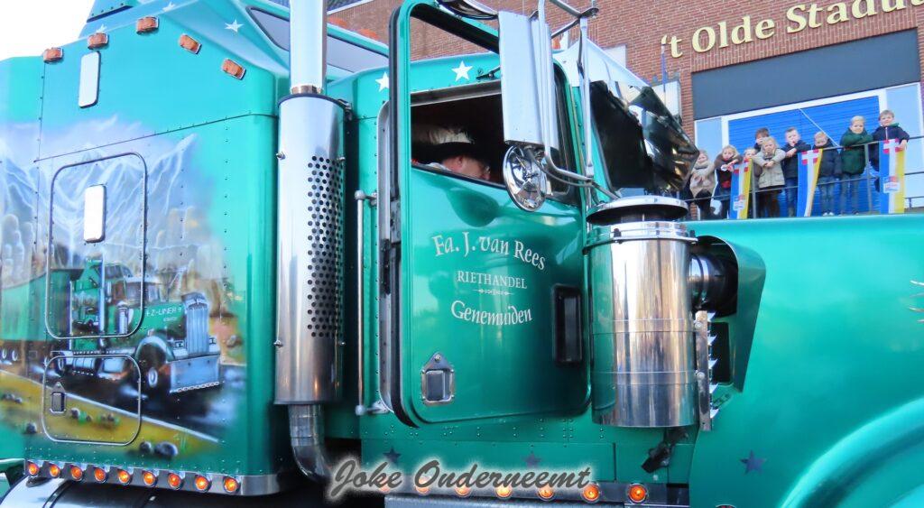 Hij ging niet per koets, niet per fiets terug maar werd opgehaald door een prachtig blinkende vrachtwagen van Jos van Rees, nog een laatste zwaai… en het was alweer herinnering deze mooie dag.