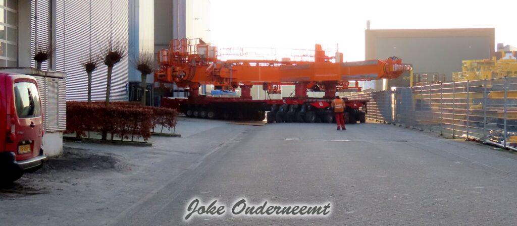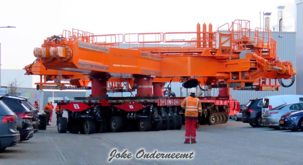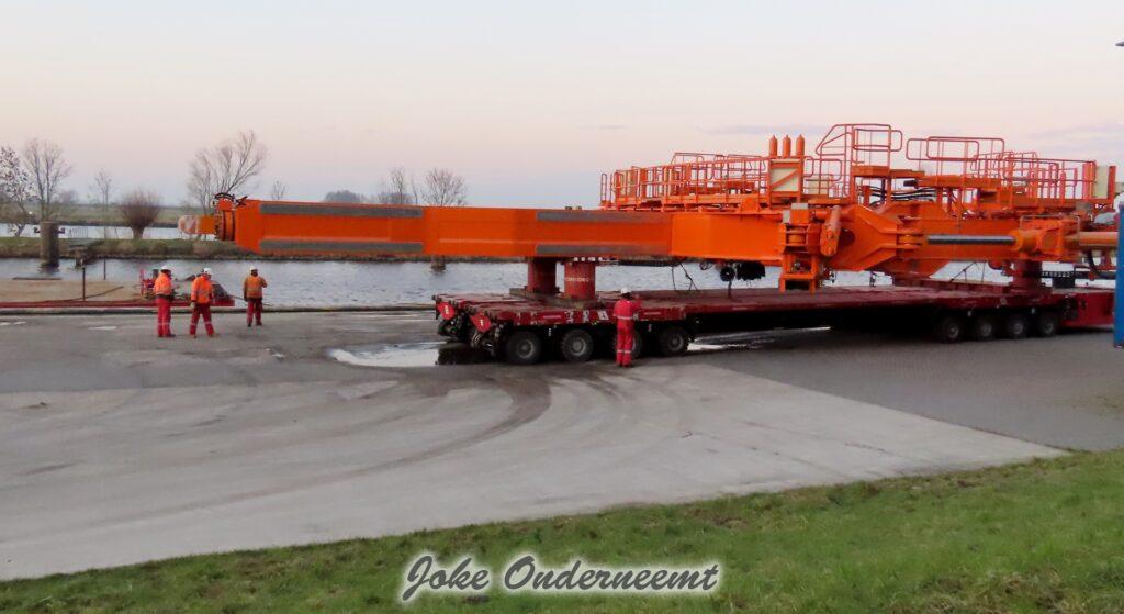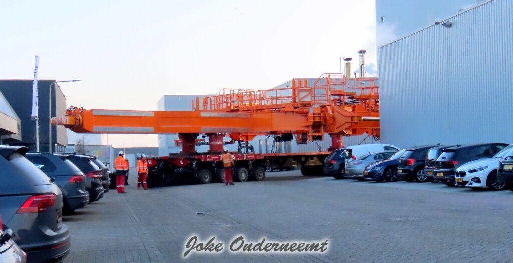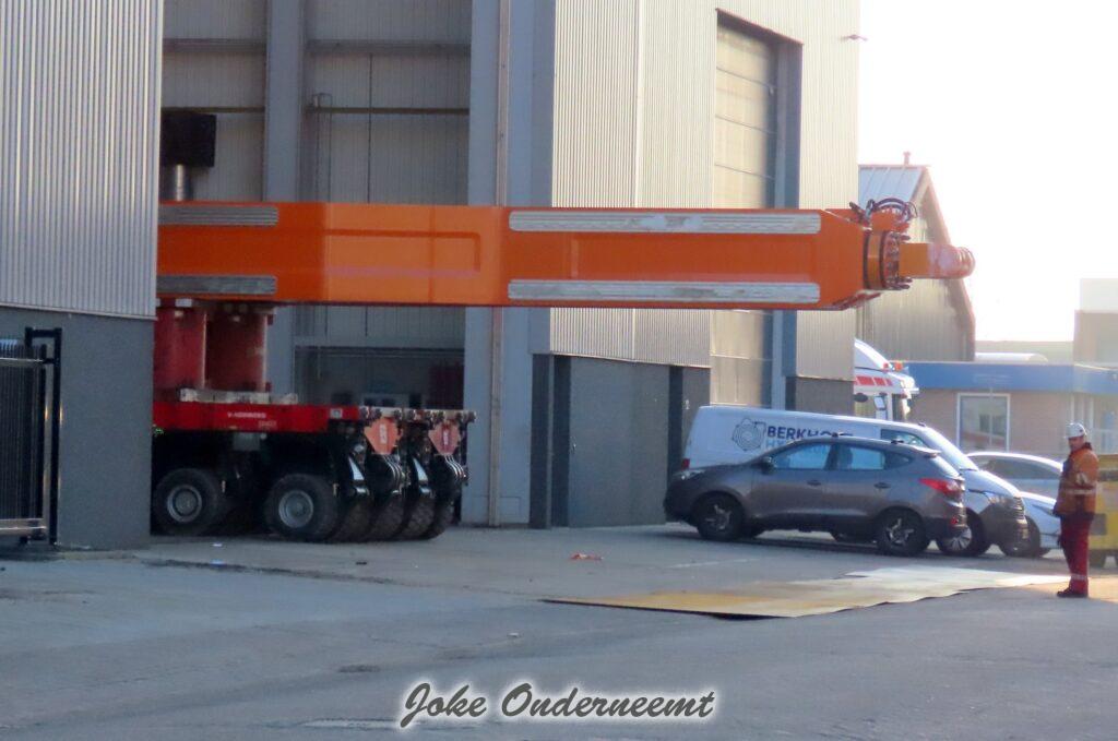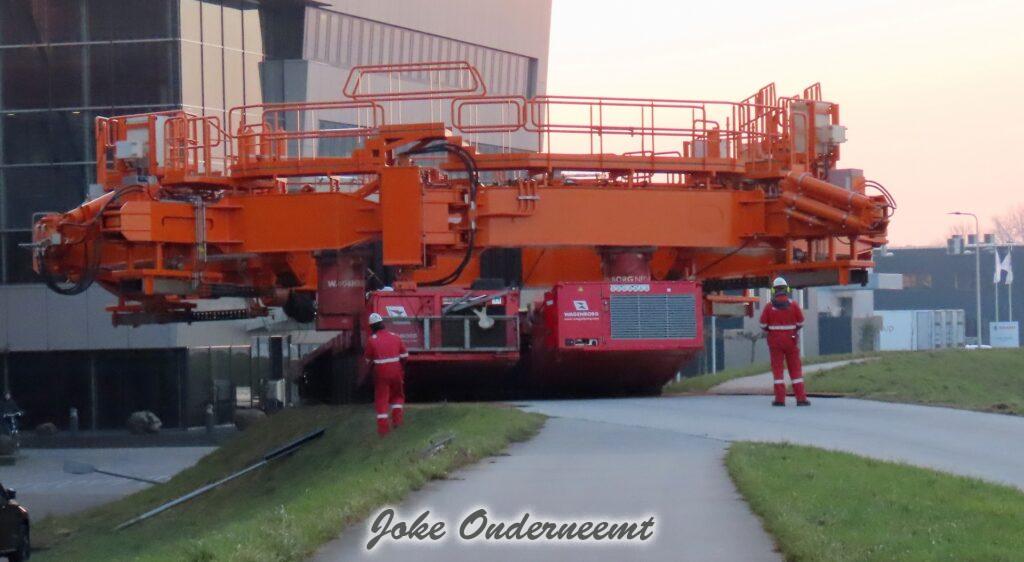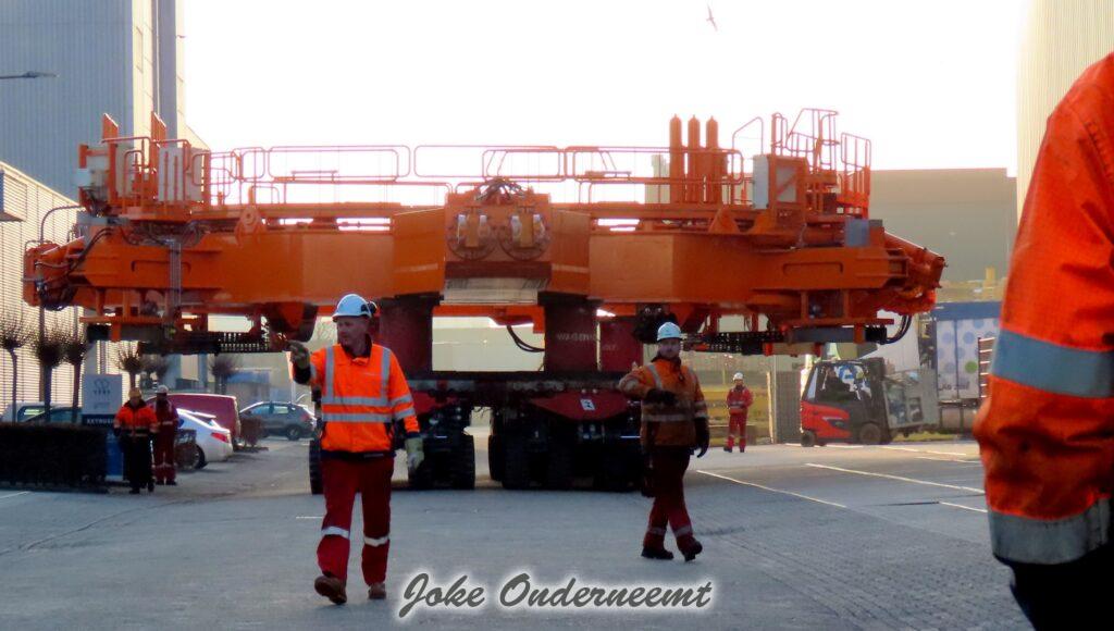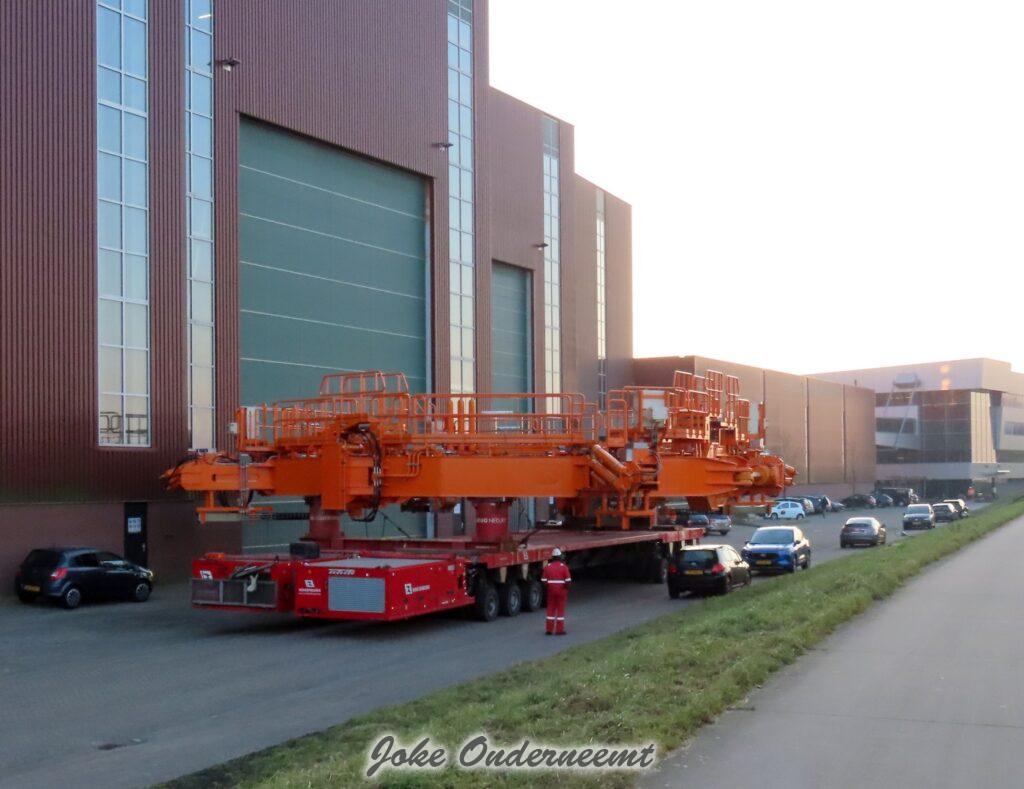 Na navraag was dit enorme gevaarte een “klein” onderdeel van een windmolen volgens mij.. het is iets wat naar elkaar toe kan buigen en zo iets groots beet kan pakken. Het gaat naar de haven van Amsterdam morgen, en dan wordt er daar verder af gebouwd om vervolgens naar een heel ver land te gaan…
