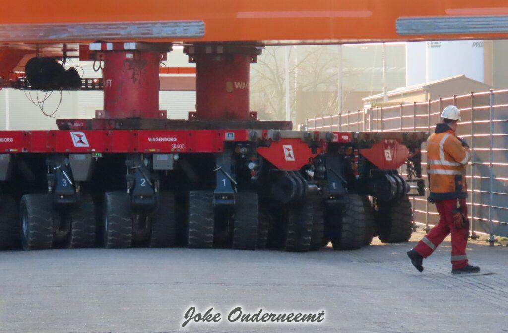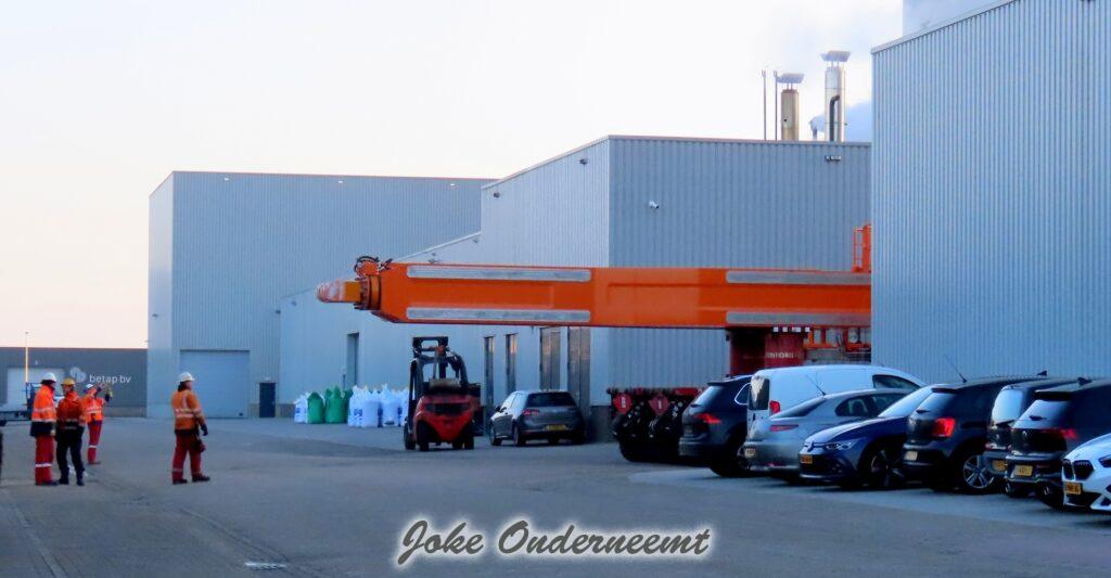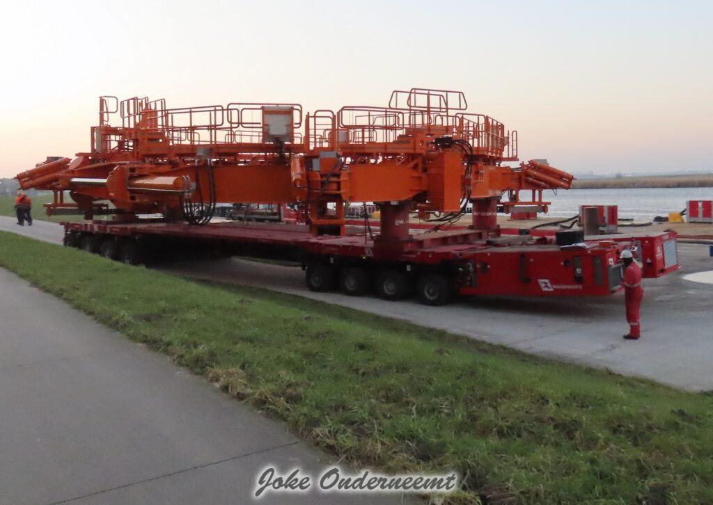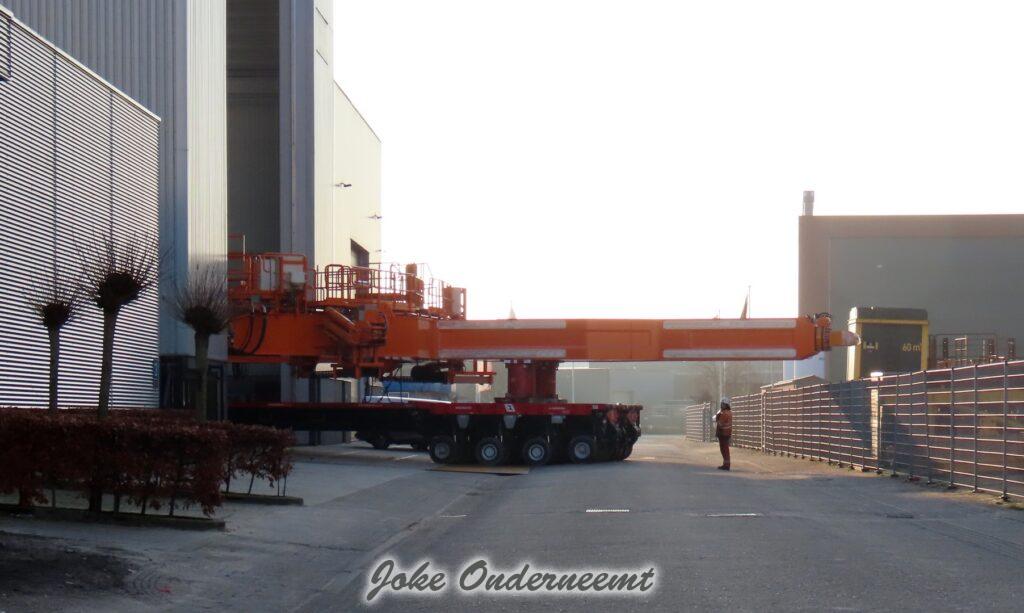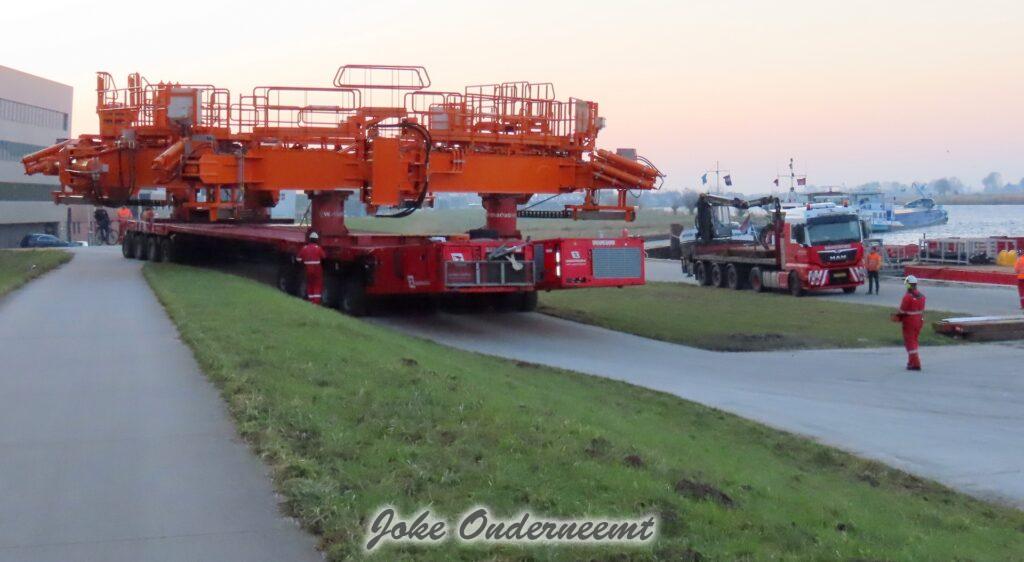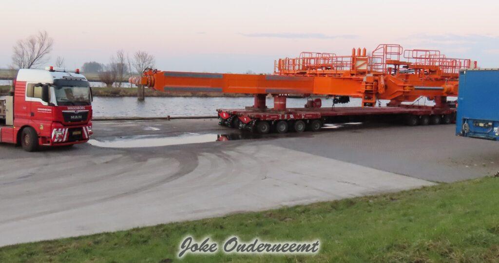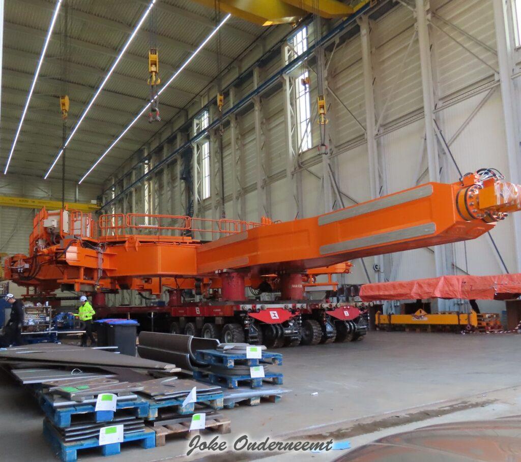 Na navraag was dit enorme gevaarte een “klein” onderdeel van een windmolen volgens mij.. het is iets wat naar elkaar toe kan buigen en zo iets groots beet kan pakken. Het gaat naar de haven van Amsterdam morgen, en dan wordt er daar verder af gebouwd om vervolgens naar een heel ver land te gaan…