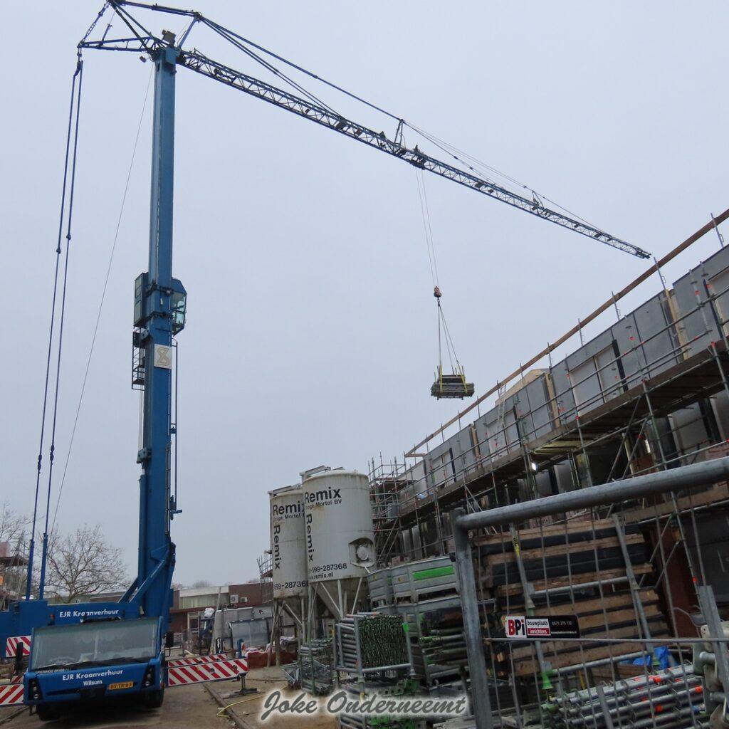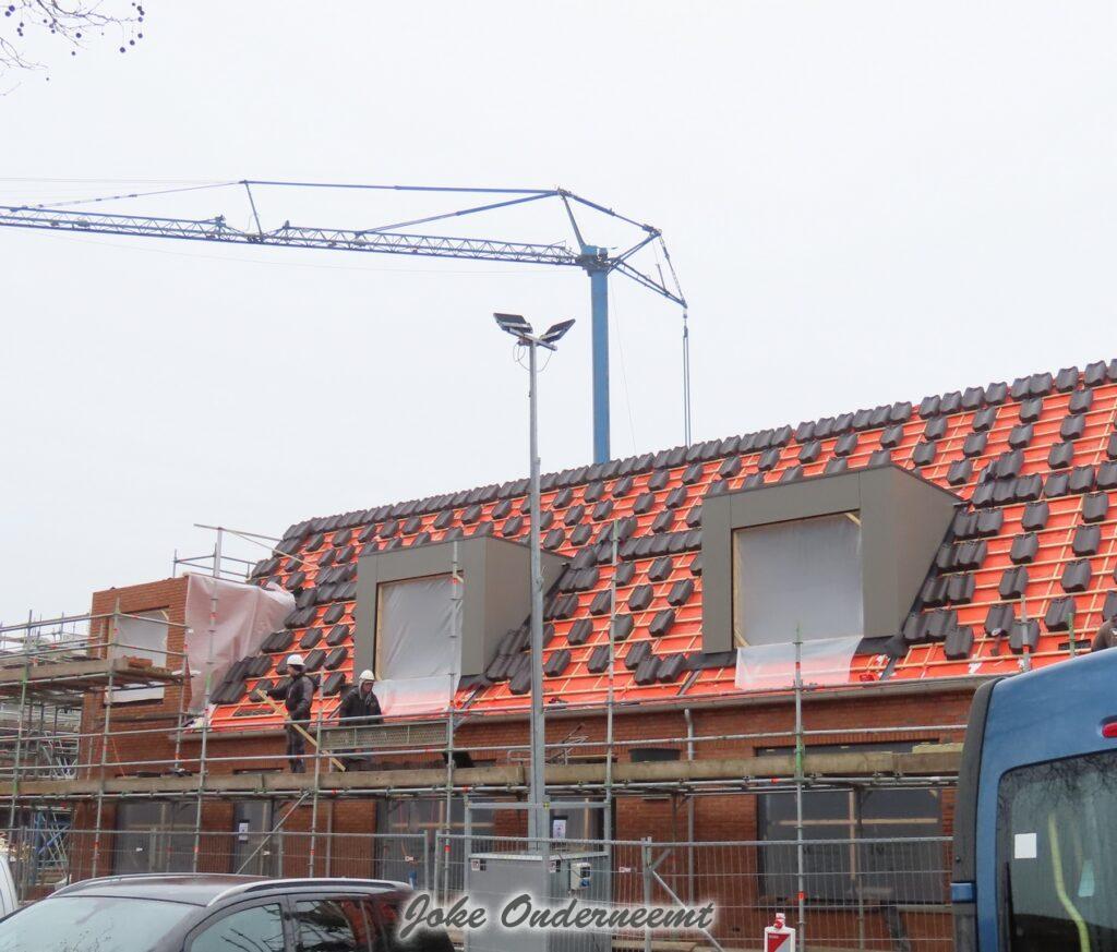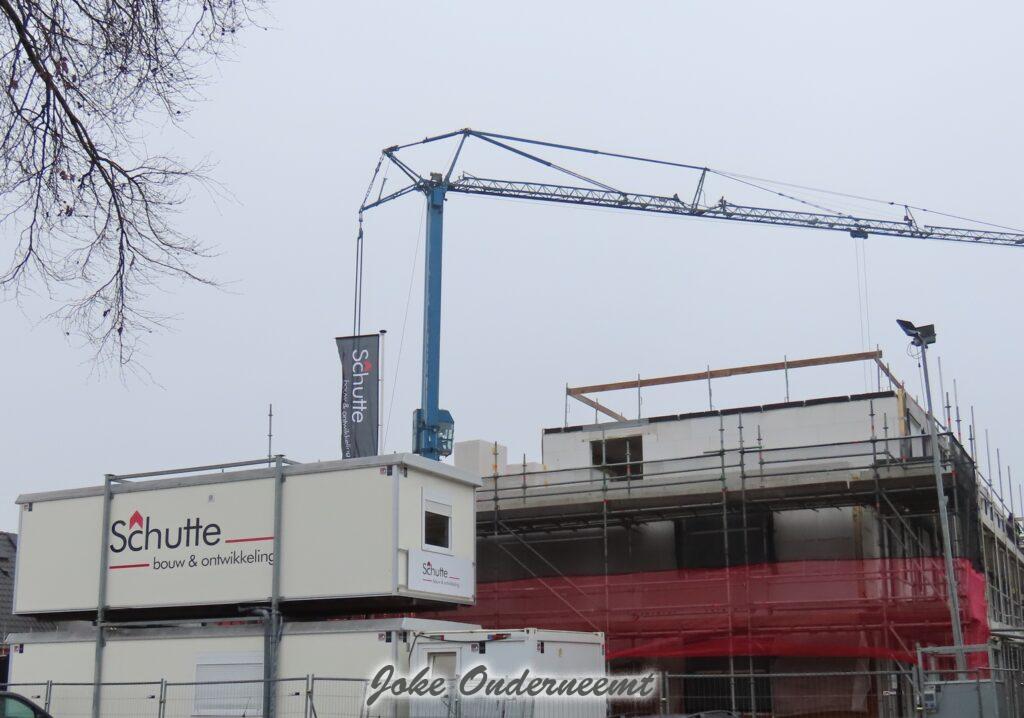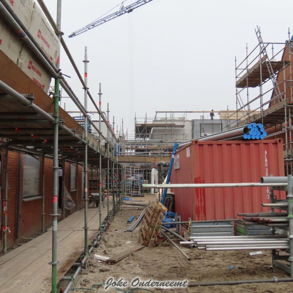 Met de bouw van de appartementen zijn ze aangekomen op de bovenste verdieping en het wordt steeds mooier en meer zichtbaar. Ook zijn de kozijnen overal geplaatst.