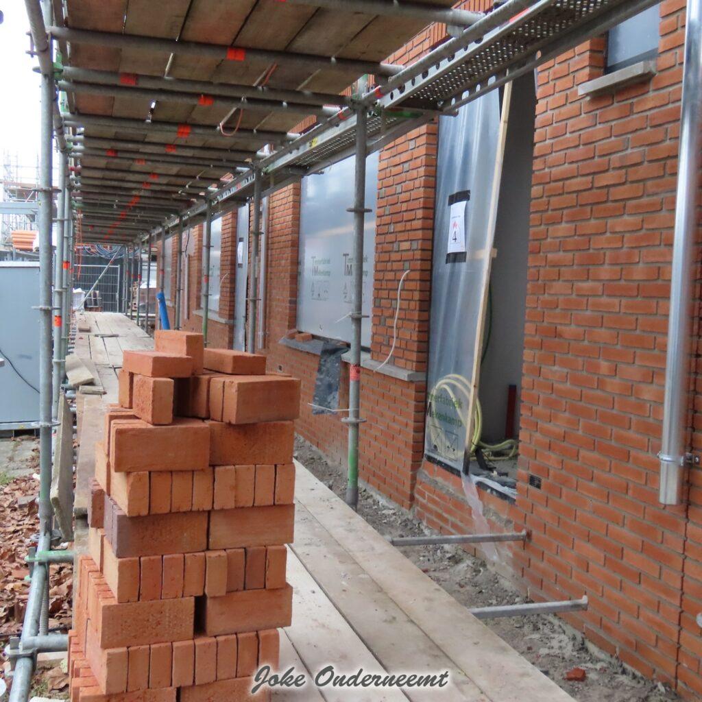 Aan de begane grond zijn ze aan de kant van de Mr Steenbergenstaat al begonnen met de muren steens op te trekken.