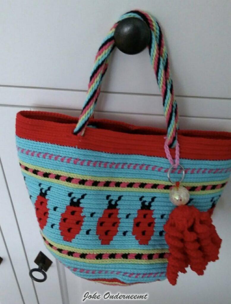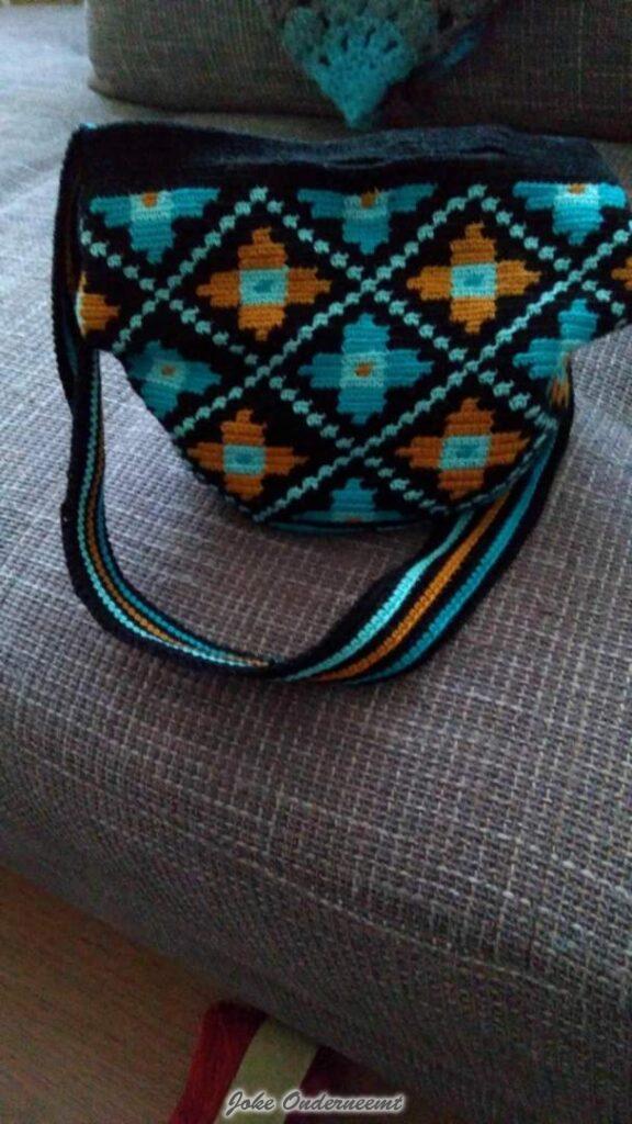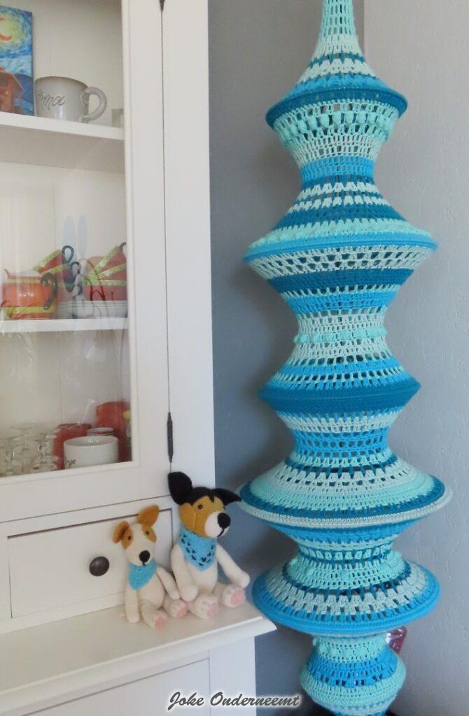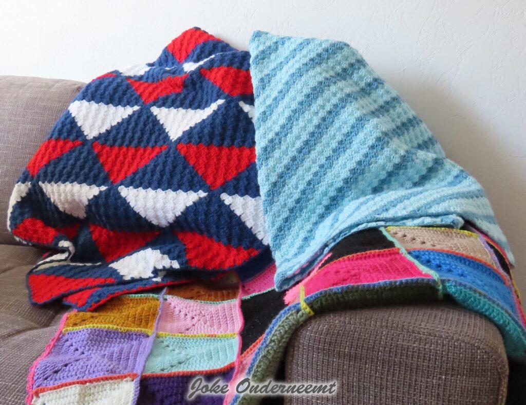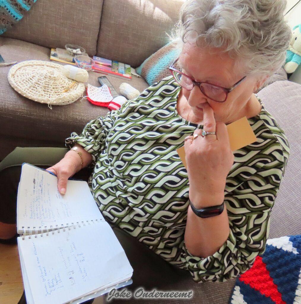 Je kunt wel zeggen dat ze “verslaafd” is aan haken… van morgens vroeg tot avonds laat zit ze in haar hoekje op de bank omringd door wol – wol – en nog meer wol. Het huis is tip top netjes en Aart krijg op tijd zijn eten ook nog gelukkig…