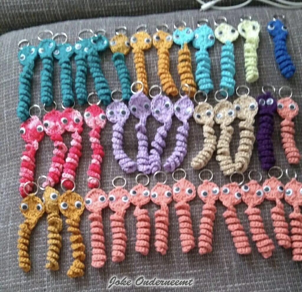 Het is een grote variatie aan haak/brei werken… het meeste is volgens mij haakwerk en dat kan zijn, baby dekentjes, knuffels.. tassen.. omslag doeken nou ja gewoon van alles waar je mensen blij mee kunt maken zeg maar.