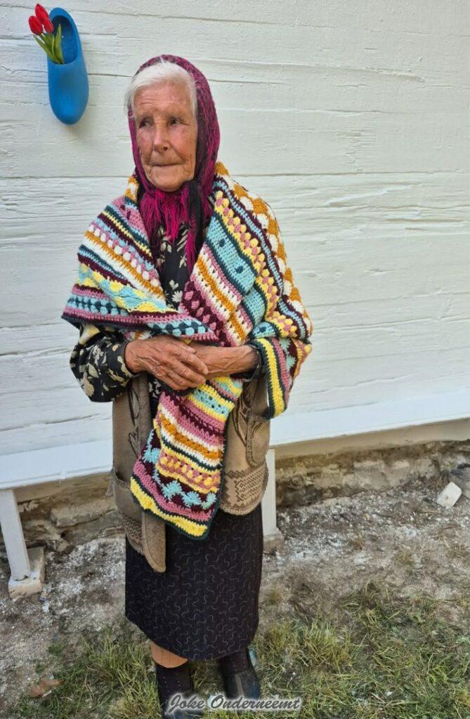 En ook daar is de blijdschap dan groot en regelmatig krijgen ze foto’s terug van een blij iemand zoals deze oude mevrouw op de foto met een mooie omslagdoek van Anneke!