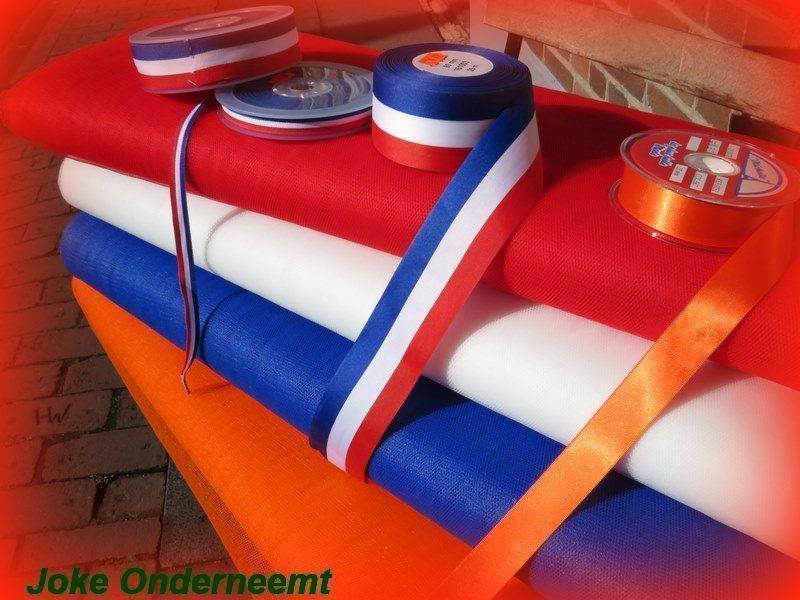 Rood, wit, blauw en oranje tule hebben ze op voorraad, vele meters lint in verschillende soorten maar ook mooie knipjes en speldjes…