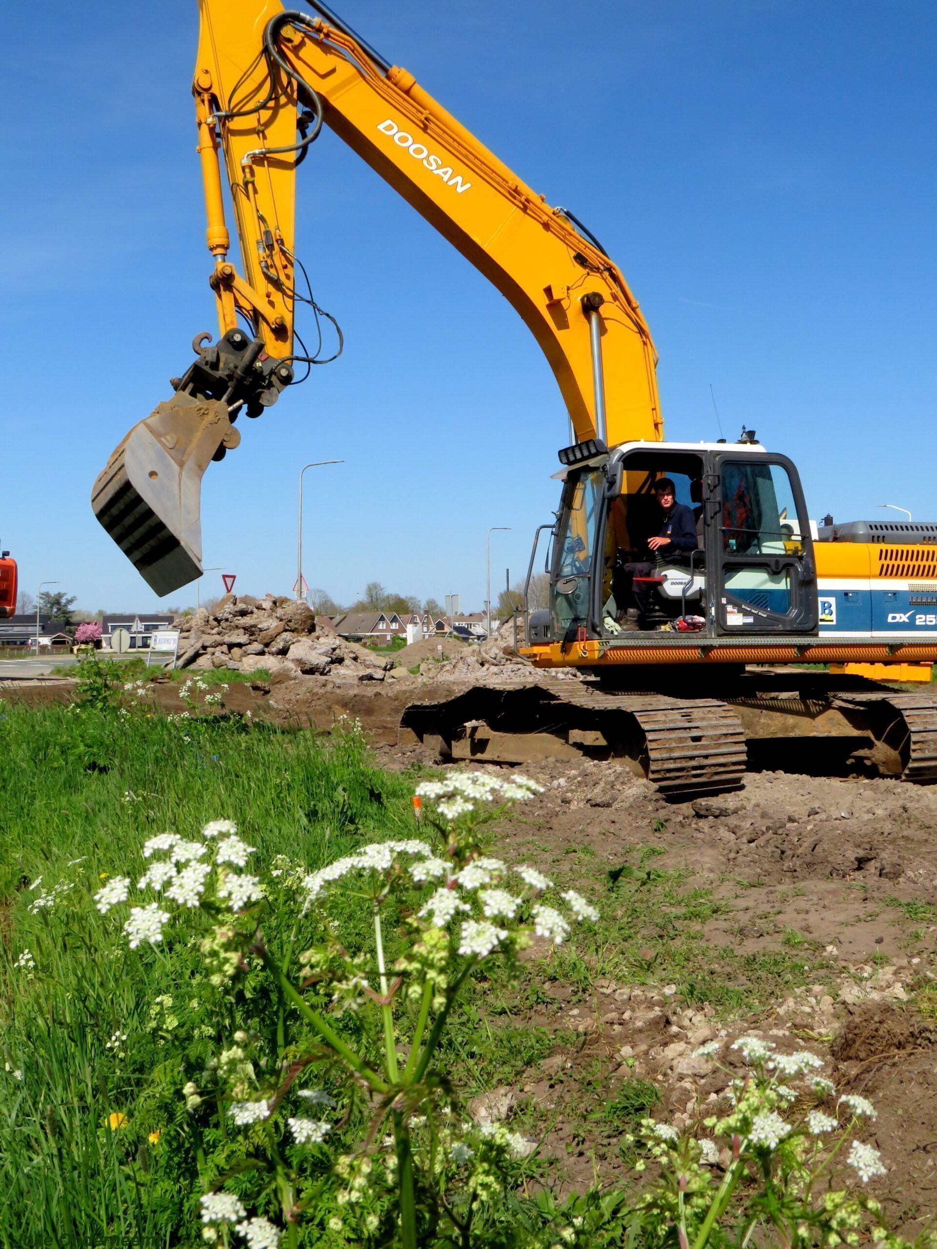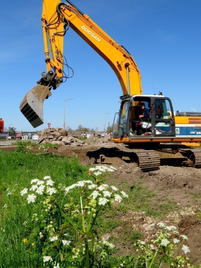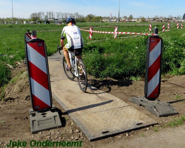 Vandaag dus de eerste dag op deze plek aan de Krommesteeg waar de eerste duiker zal komen. De verkeersborden zijn geplaatst voor de omleidingsroutes , en het noodfietspad is aangelegd en dat lijkt wel een toeristische route door de weilanden. Daar wordt dankbaar gebruik van gemaakt !
