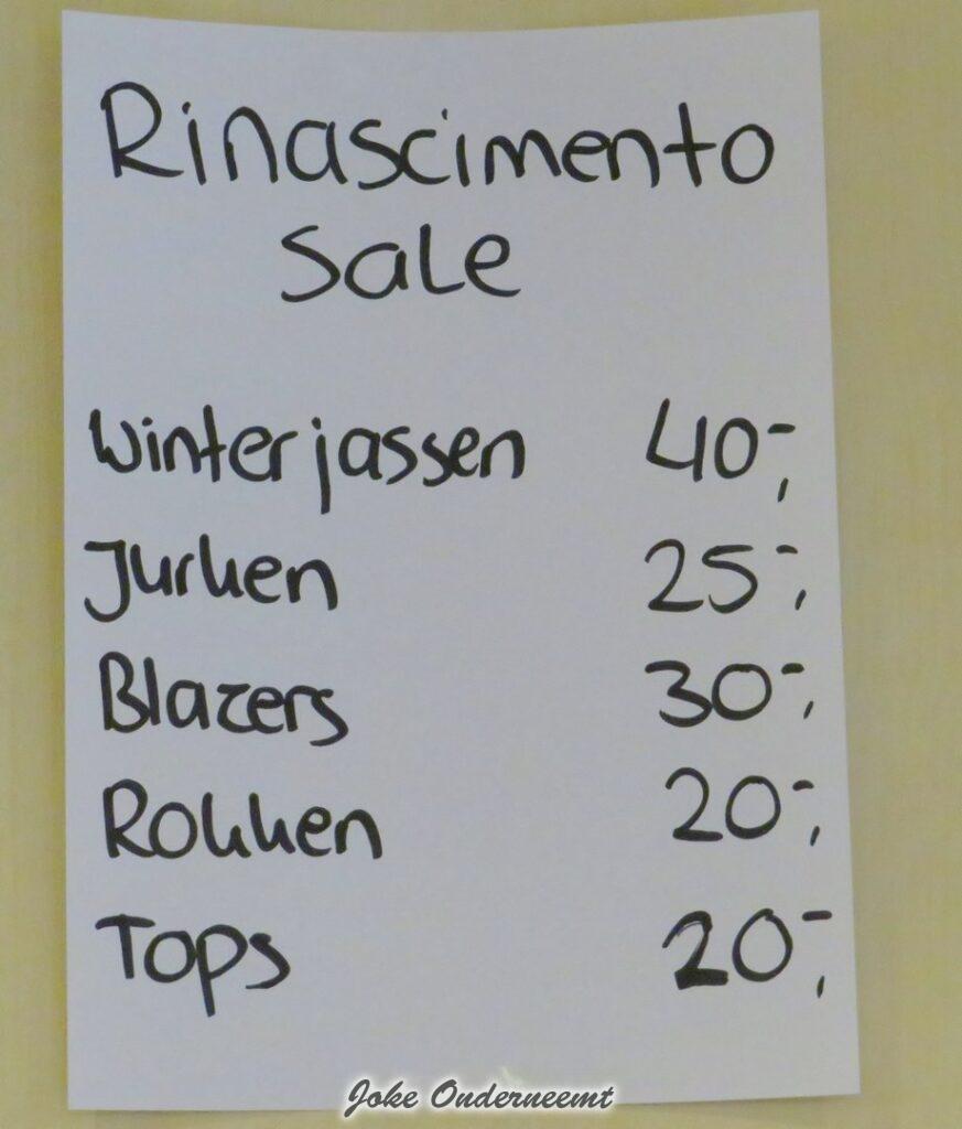 Heel veel Rinascimento voor hele kleine prijsjes, ook winterkleding! Dus liefhebbers opgelet, want ze ruimen dit merk op met ongeveer 80% korting!