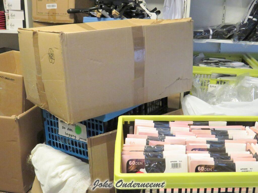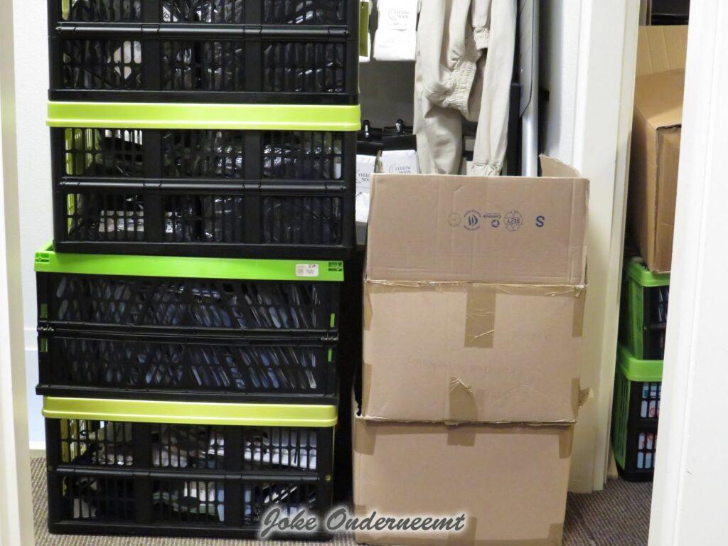 Ondertussen bekeken we alle dozen en kratten die er stonden want dat moest allemaal op de kraam morgen komen en dat was ontzettend veel.