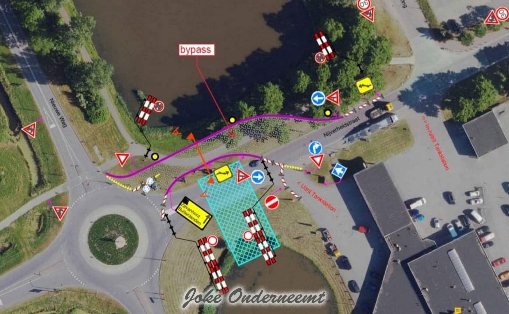 Als deze twee kanten van de weg af zijn dan wordt er weer een bypass aangelegd zodat de bouw van de duiker onder de nijverheidsstraat kan beginnen Het verkeer kan dan gewoon het industrieterrein bereiken via de Nijverheidstraat. Ook blijft tankstation Naberman gewoon bereikbaar !