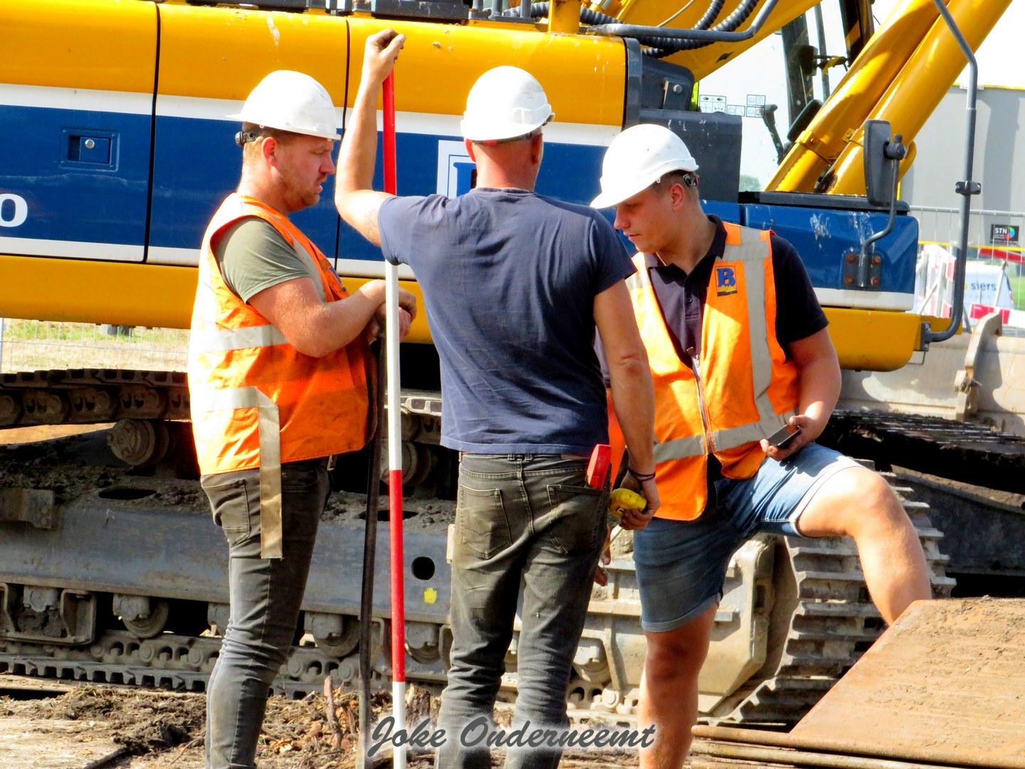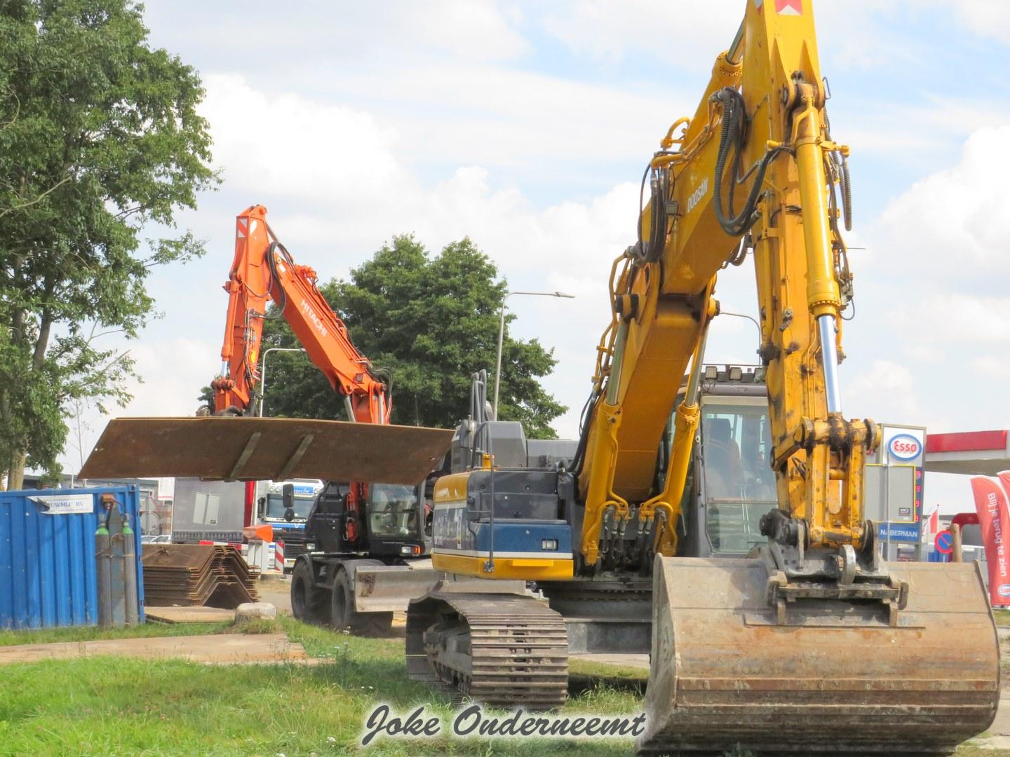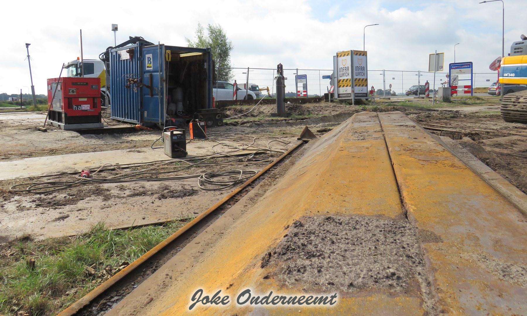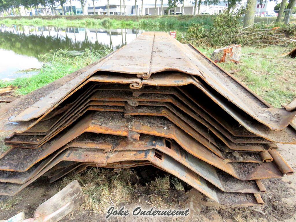 Maandag is de aannemer Bouwhuis BV weer begonnen met de voorbereidende werkzaamheden, zoals bouwhekken plaatsen rondom het werkterrein, en de rijplaten leggen. Inmiddels zit de damwand erin en zijn ze bezig de “werkplek” te maken waar de duiker komt.. als deze werkplek in het water klaar is kan de firma Luinstra bronbemaling beginnen met het wegpompen van het water zodat men kan beginnen.