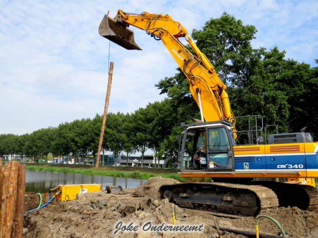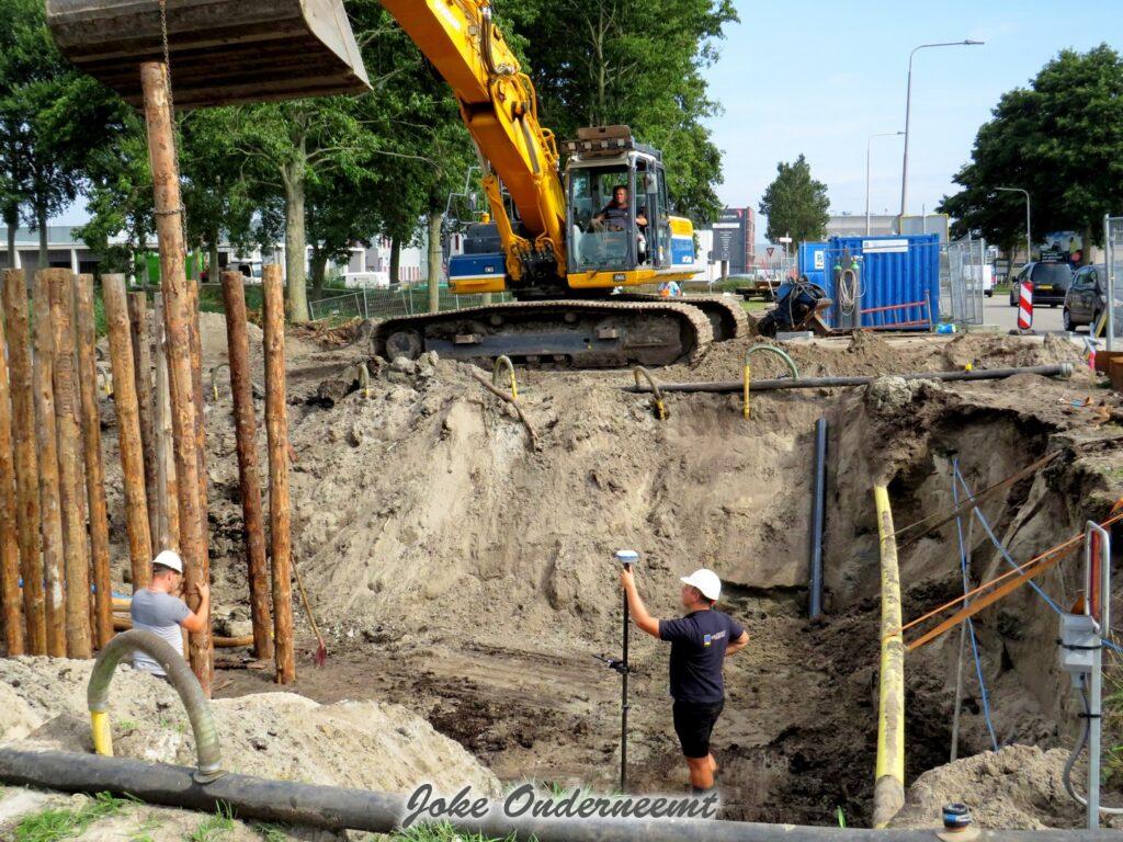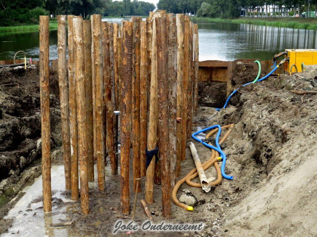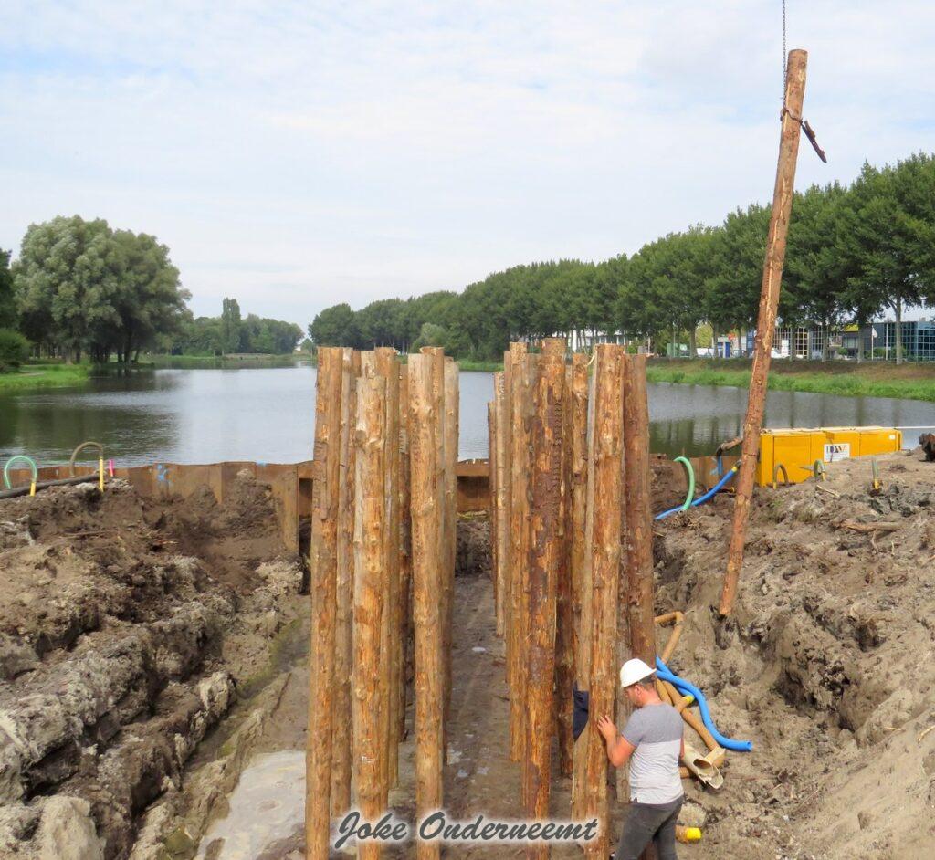 Damwanden zijn geslagen en vandaag de palen gezet alles ter voorbereiding van de duiker die morgen komt.