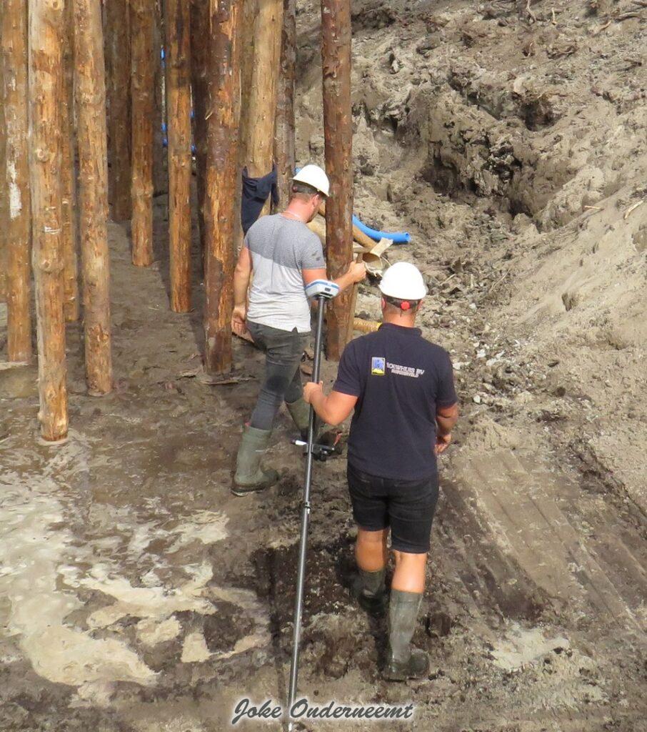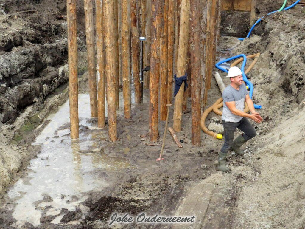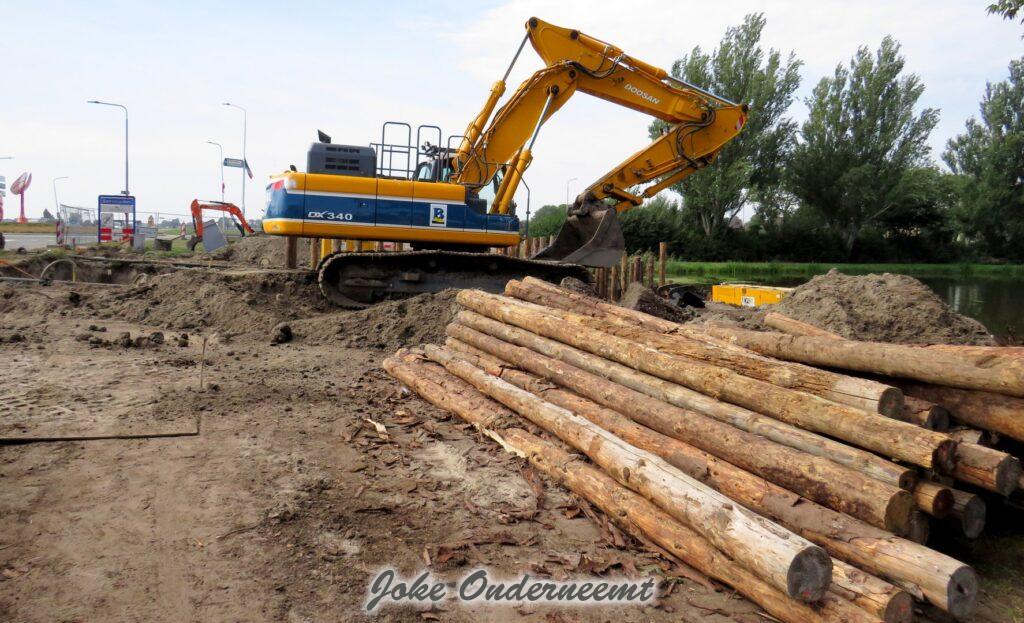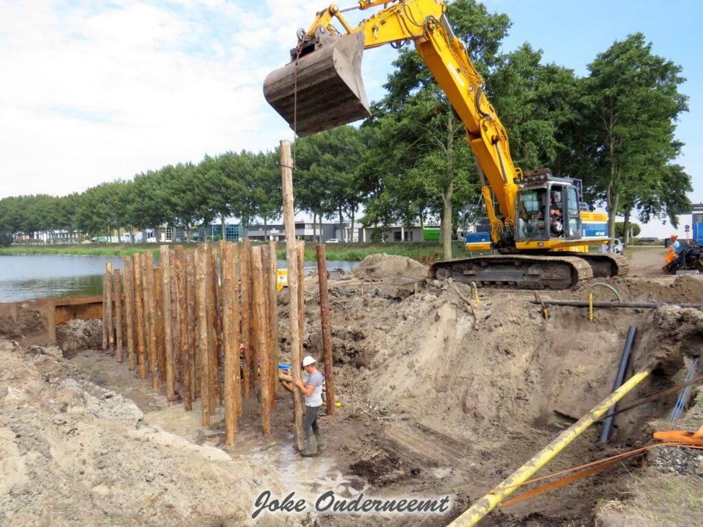 Damwanden zijn geslagen en vandaag de palen gezet alles ter voorbereiding van de duiker die morgen komt.