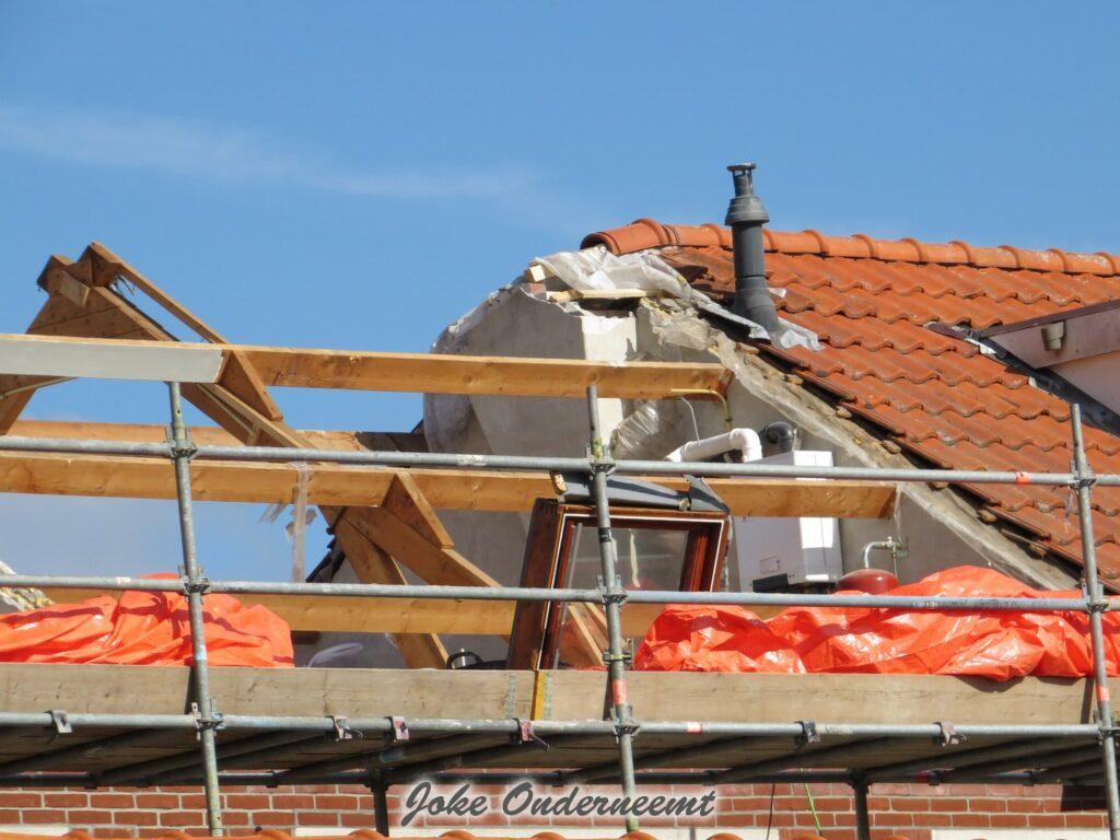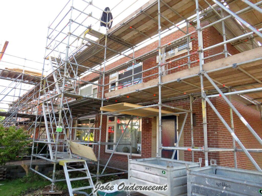 Er wordt overal gerenoveerd door Wetland Wonen inmiddels, maar hier zijn ze dus de eerste “daklozen”daar in de Trompstaat. Daarna gaan alle kozijnen eruit, en komen er nieuwe gevels voorgeplaatst. Dat zijn kant en klare panelen aldus een paar werkmannen die lekker in het zonnetje zaten te schaften.