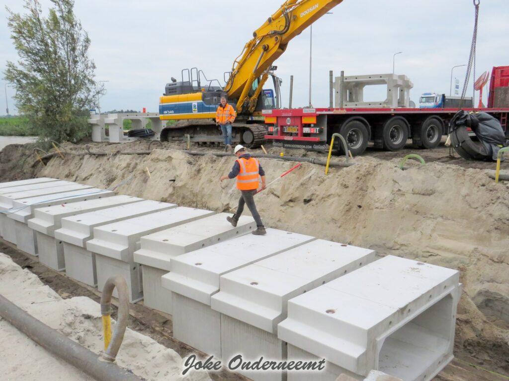 Gisteren heb ik dus de laatste duikers erop gezet en tevens de laatste foto’s van dit project ondanks dat het nog niet helemaal gereed is. Maar a.s. dinsdag wordt ik weer geopereerd aan mijn andere voet dus dan komt er van foto’s maken niks meer en heb ik huisarrest voor zeker zes weken . Daarom afscheid genomen van de mannen en het leuke foto project..
